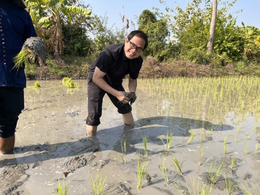 ได้ร่วมกิจกรรมดำนาในพื้นที่แปลงเกษตร (ที่ไม่ได้ใช้การเผา) ร่วมกับนักศึกษาจากมหาวิทยาลัยเกษตรศาสตร์ วิทยาเขตบางเขนที่มาศึกษาดูงานฯ ทั้งนี้ เพื่อประชาสัมพันธ์สร้างการรับรู้แก่เกษตรกรและประชาชน ถึงผลกระทบของการเผา ฯลฯ