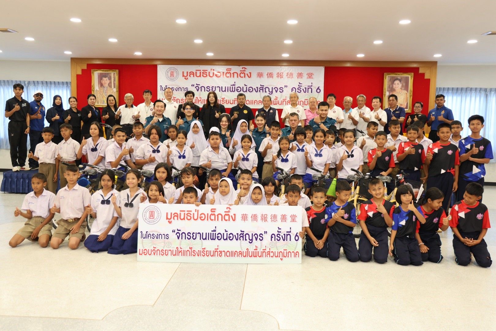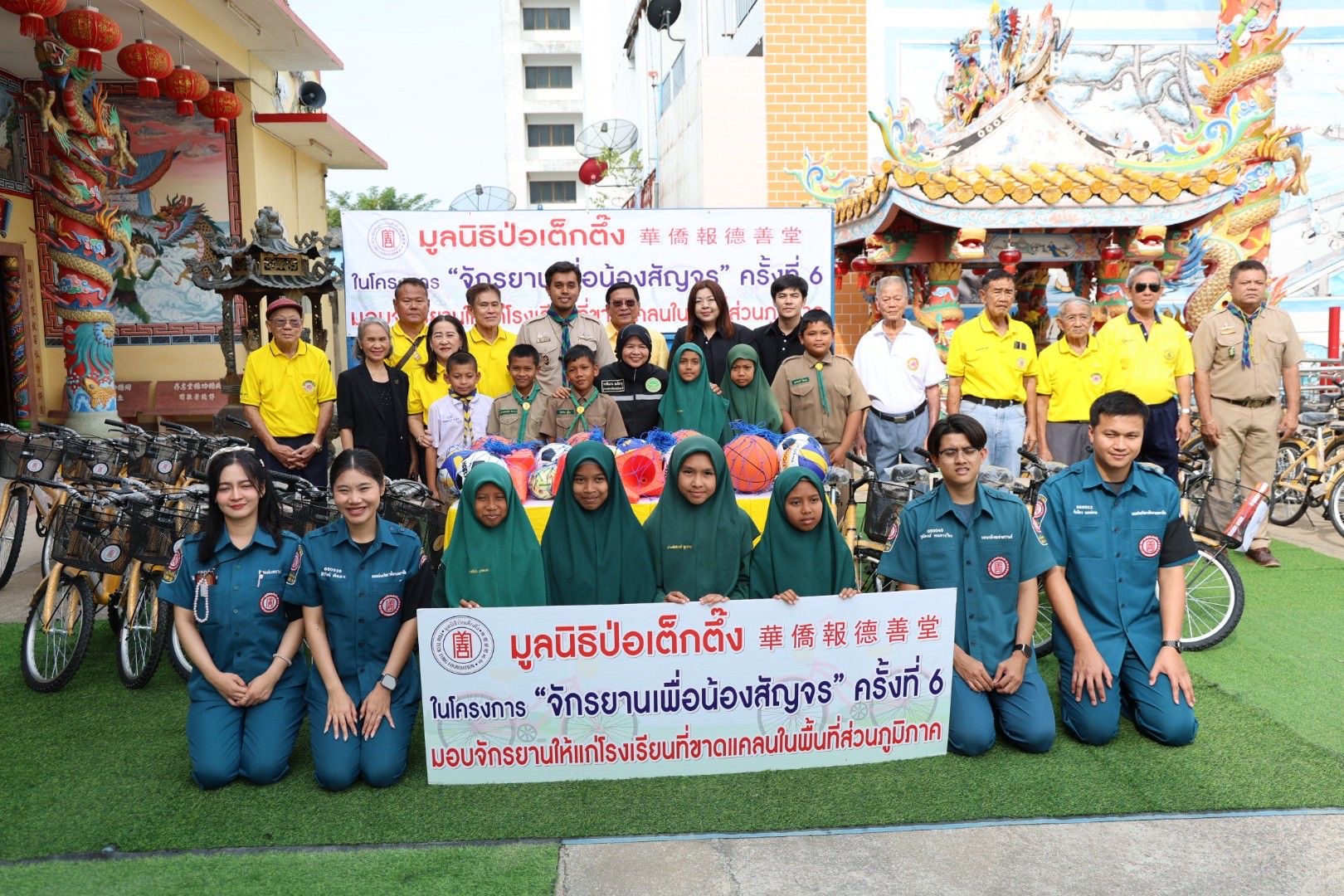 ระหว่างวันที่ 11 พฤศจิกายน 2568 – 22 มกราคม 2569 มูลนิธิป่อเต็กตึ๊ง โดย นายวิเชียร เตชะไพบูลย์ ห่วงใยนักเรียนในพื้นที่ชนบทภาคกลางและภาคใต้ มอบหมายให้ คณะกรรมการ และผู้ช่วยกรรมการมูลนิธิฯ นำโดย นายจารุรัตน์ คุณัตถานนท์ กรรมการและเหรัญญิก นายสุรพงศ์ เสรฐภักดี กรรมการและรองเหรัญญิก นายชาญกิจ วิทยาวรากรณ์ กรรมการ นายชูเดช เตชะไพบูลย์ ผู้ช่วยกรรมการ นำทีมฝ่ายสาธารณภัย และฝ่ายสังคมสงเคราะห์ ลงพื้นที่ภาคกลางและภาคใต้ มอบรถจักรยานพร้อมอุปกรณ์กีฬาและค่าพาหนะให้แก่โรงเรียนชนบทที่ขาดแคลนภาคกลางและภาคใต้ ในโครงการ “จักรยานเพื่อน้องสัญจร” ครั้งที่ 6 รวม 20 จังหวัด 100 โรงเรียน ประกอบด้วย จังหวัดพระนครศรีอยุธยา ลพบุรี ชัยนาท สุพรรณบุรี กาญจนบุรี สมุทรสงคราม ชลบุรี จันทบุรี ตราด สระแก้ว ชุมพร สุราษฎร์ธานี นครศรีธรรมราช พัทลุง ตรัง สตูล สงขลา ปัตตานี ยะลา และนราธิวาส รวมจำนวนจักรยาน 2,000 คัน อุปกรณ์กีฬา จำนวน 100 ชุด และค่าพาหนะแก่โรงเรียนๆ ละ 2,000 บาท รวมงบประมาณดำเนินการทั้งสิ้น 2,854,000 บาท (สองล้านแปดแสนห้าหมื่นสี่พันบาทถ้วน) เพื่ออำนวยความสะดวกแก่นักเรียนที่ประสบปัญหาในการเดินทางมาโรงเรียน รวมถึงเป็นการแบ่งเบาภาระค่าพาหนะแก่ผู้ปกครองได้อีกทางหนึ่ง อีกทั้งยังเสริมสร้างให้นักเรียนได้ออกกำลังกาย เรียนรู้กฎจราจร เรียนรู้การแบ่งปัน และดูแลรักษาสาธารณสมบัติร่วมกัน โดยมี ผู้แทนจากหน่วยงานรัฐเป็นประธานในพิธี พร้อมด้วยเยาวชนและผู้แทนจากสถาบันการศึกษา เป็นตัวแทนรับมอบ และสมาคม/มูลนิธิแต่ละจังหวัด เป็นผู้ประสานงานและร่วมในพิธี รวมถึง อาสาสมัครเฉพาะกิจ และอาสาศิลปินมูลนิธิป่อเต็กตึ๊ง นำโดย นายนเรศ วิทยาวรากรณ์ นายวิวัฒน์ แก้วกำพลกุล และนายวาทิต อิทธิฤทธิ์โสภา (วินน์) ร่วมลงพื้นที่มอบ