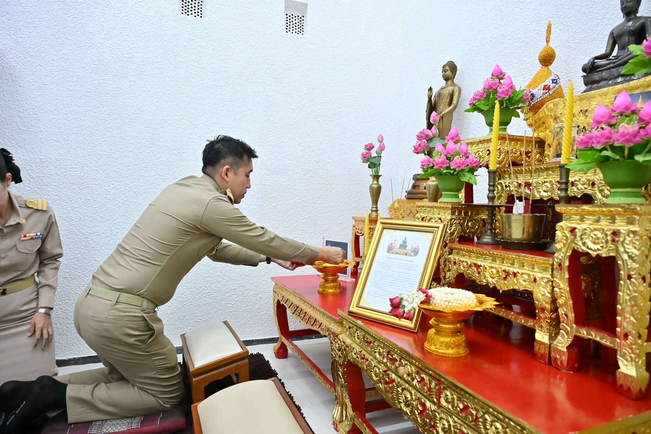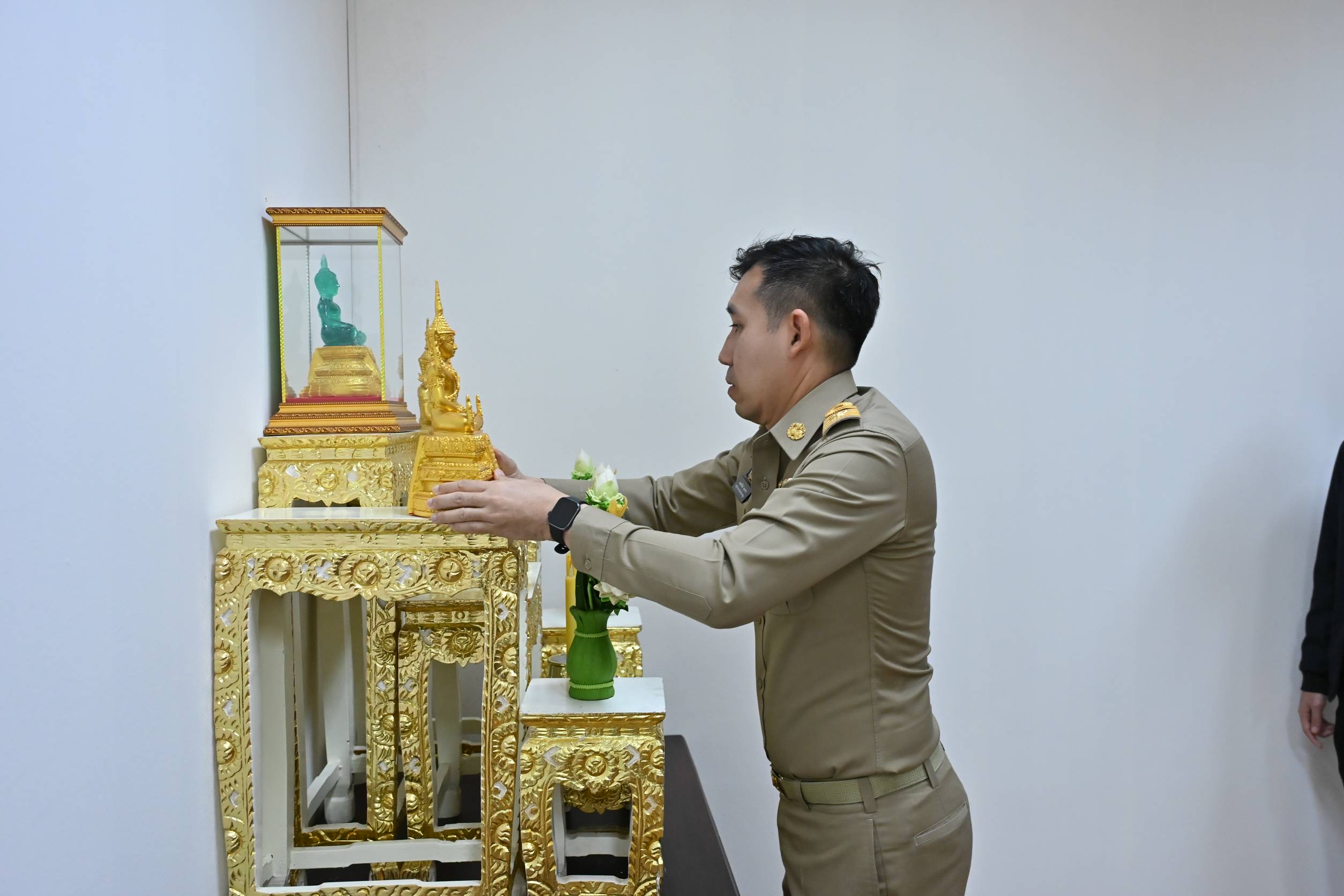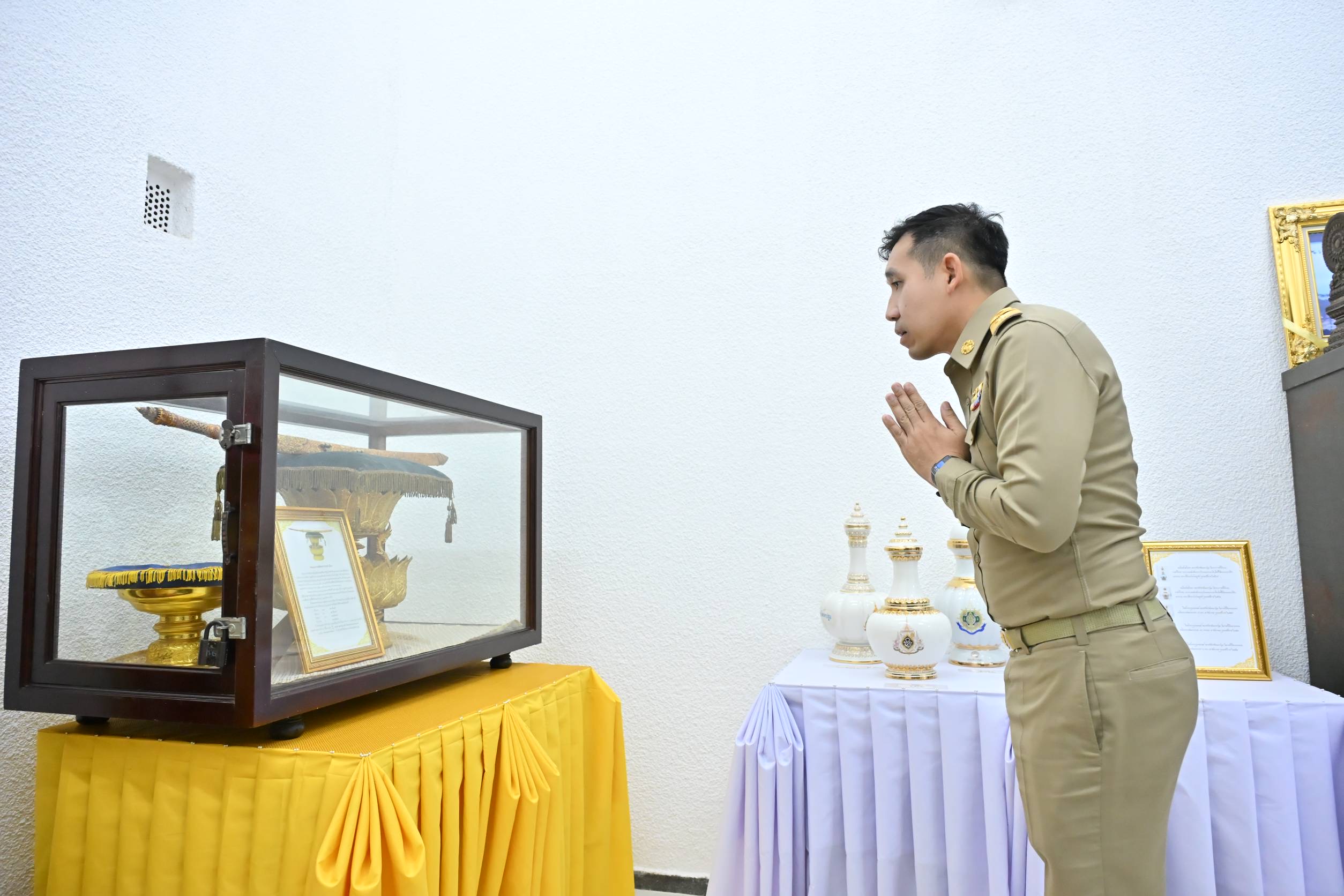 หลังจากนั้นไปยังห้องมั่นคง สำนักงานคลังจังหวัด บูชาพระพุทธนวราชบพิตร บูชาพระพุทธเมตตาประชาไทยไตรโลกนาถคันธารราฐอนุสรณ์ ทำความเคารพพระแสงราชศัตรา ประจำจังหวัดนครปฐม และบูชาพระพุทธรูปประจำห้องทำงาน โดยมีหัวหน้าส่วนราชการ ข้าราชการ ร่วมแสดงความยินดี