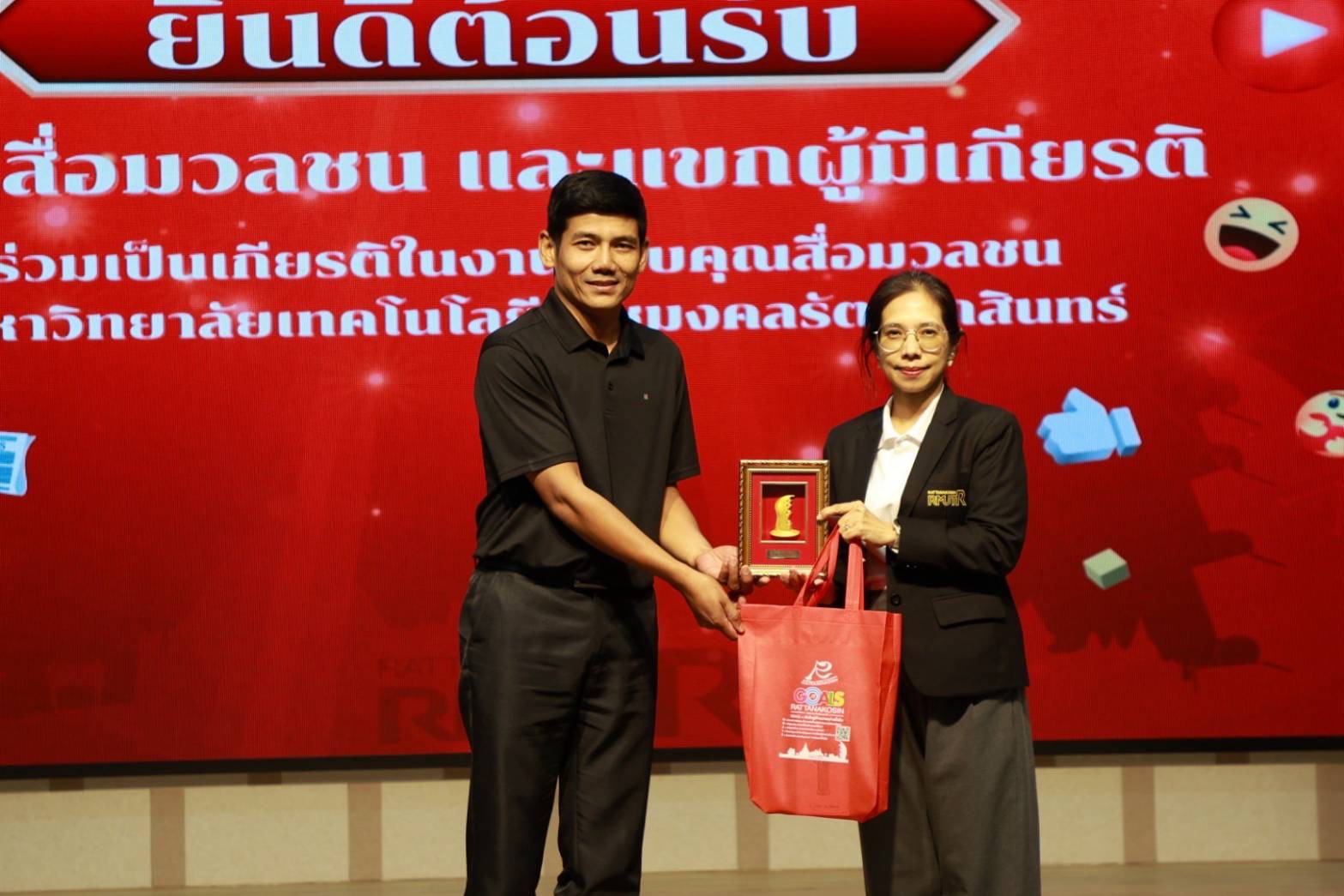 มทร.รัตนโกสินทร์ ณ มทร.รัตนโกสินทร์ ศาลายา โดยมีสื่อมวลชนจากหลากหลายแขนงเข้าร่วม ทั้งจากโทรทัศน์ วิทยุ หนังสือพิมพ์ และสื่อออนไลน์ เพื่อร่วมแลกเปลี่ยนแนวทางในการเผยแพร่ข่าวสารเกี่ยวกับมหาวิทยาลัย และสร้างความร่วมมือด้านการสื่อสารให้เกิดประสิทธิภาพสูงสุด บรรยากาศภายในงานเป็นไปอย่างอบอุ่นและเป็นกันเอง โดยมีการนำเสนอข้อมูลเกี่ยวกับบทบาทและการดำเนินงานของมหาวิทยาลัย ตลอดจนกิจกรรมแลกเปลี่ยนความคิดเห็นระหว่างผู้บริหาร มทร.รัตนโกสินทร์ และสื่อมวลชน เพื่อเสริมสร้างความเข้าใจและเข้าถึงกลุ่มเป้าหมายในเชิงรุก นอกจากนี้ คณะสื่อมวลชนยังได้เยี่ยมชมสถานที่สำคัญและการจัดการเรียนการสอนของแต่ละคณะ ได้แก่ การสักการะพระบรมราชานุสาวรีย์พระบาทสมเด็จพระจอมเกล้าเจ้าอยู่หัว ณ ลานพระบรมราชานุสาวรีย์ การเยี่ยมชมคณะวิทยาศาสตร์และเทคโนโลยี อาทิ ห้องปฏิบัติการน้ำหอม ชั้น 8 โรงงานเครื่องสำอางต้นแบบ สาขาเทคโนโลยีสุขภาพและความงาม ชั้น 3 และครุภัณฑ์ชุดปฏิบัติการเสริมสร้างความเข้าใจการจัดการขนส่งด้วยระบบรางสมัยใหม่ รวมถึงการดูงานการเรียนการสอนของคณะวิศวกรรมศาสตร์ ในห้องปฏิบัติการระบบอัตโนมัติและหุ่นยนต์ ห้องปฏิบัติการระบบ SCADA และ IIOT และห้องปฏิบัติการระบบการผลิตอัตโนมัติและหุ่นยนต์อุตสาหกรรม กิจกรรมดังกล่าวช่วยเสริมสร้างภาพลักษณ์และทำให้ มทร.รัตนโกสินทร์ เป็นที่รู้จักอย่างแพร่หลายมากยิ่งขึ้น พร้อมทั้งขยายเครือข่ายความร่วมมือกับสื่อมวลชน เพื่อให้การสื่อสารข้อมูลของมหาวิทยาลัยเป็นไปอย่างมีประสิทธิภาพและทั่วถึง