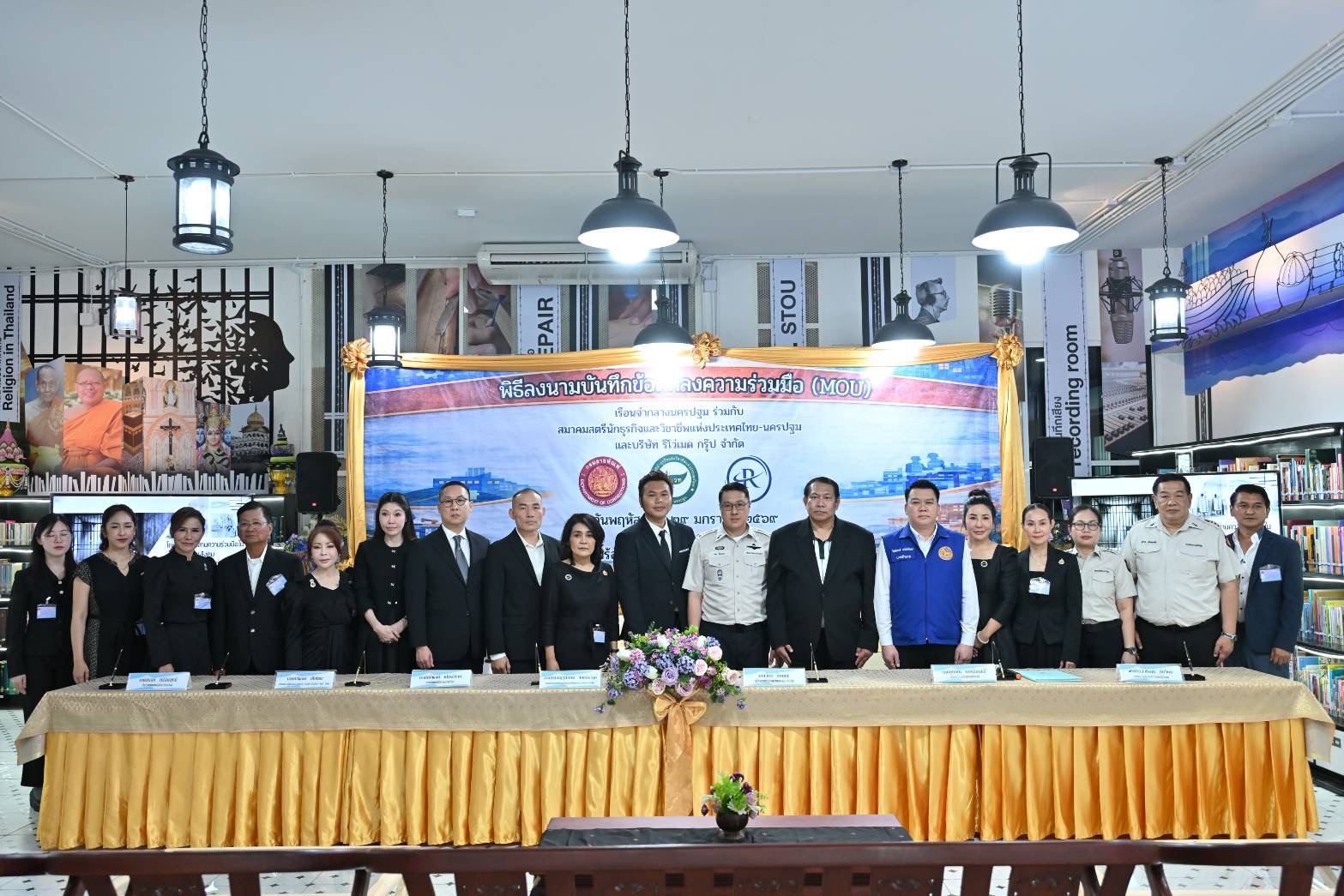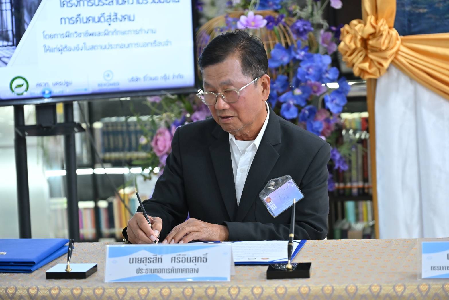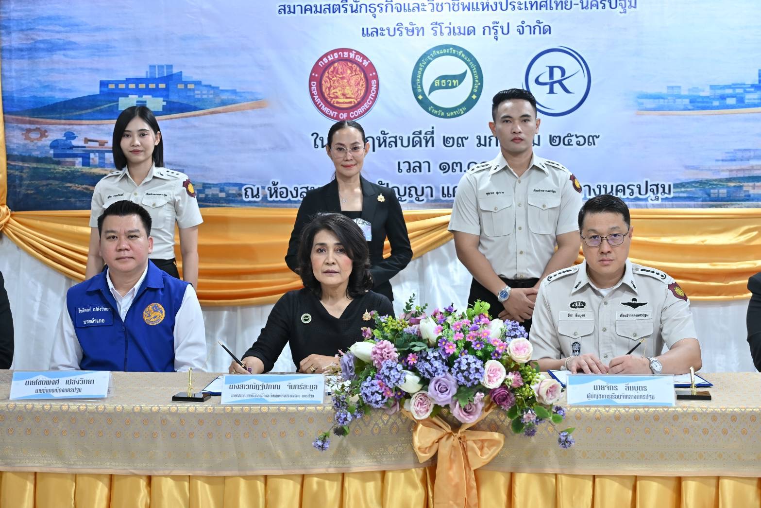 เรือนจำกลางนครปฐม ร่วมกับ สมาคมสตรีนักธุรกิจและวิชาชีพแห่งประเทศไทย-นครปฐม และ บริษัท รีโว่เมด กรุ๊ป จำกัด สาขาบางเลน ลงนามบันทึกข้อตกลงความร่วมมือ โครงการฝึกวิชาชีพ และฝึกทักษะการทำงานให้แก่ผู้ต้องขังในสถานประกอบการนอกเรือนจำ เพื่อให้ผู้ต้องขังมีรายได้เลี้ยงตนเองระหว่างต้องโทษ