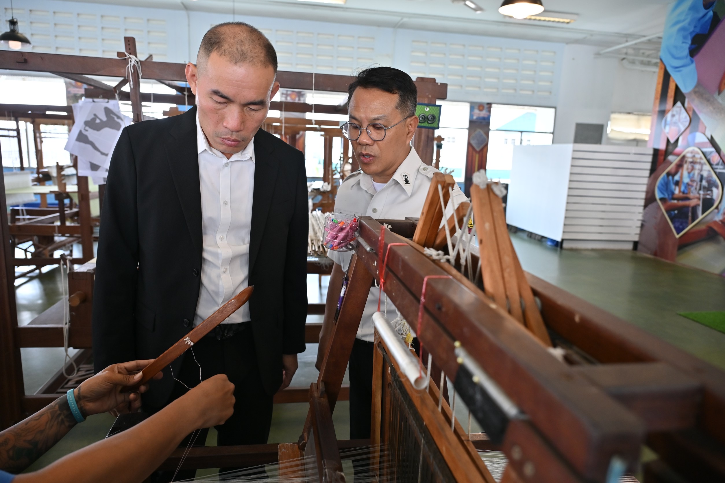 นางสาวณัฏฐ์ปภาณ จันทร์ละมูล นายกสมาคมสตรีนักธุรกิจและวิชาชีพแห่งประเทศไทย-นครปฐม /ประธานบริษัทประชารัฐรักสามัคคีวิสาหกิจเพื่อสังคม-นครปฐม พร้อมด้วยคณะกรรมการสมาคมสตรีนักธุรกิจและวิชาชีพแห่งประเทศไทย-นครปฐม และท่านพันตำรวจโทสุธี ชื่นจิตต์ รองผู้กำกับป้องกันปราบปราม สถานีตำรวจภูธรเพ จ.ระยอง ในฐานะเลขานุการโครงการคืนคนดีสู่สังคม เยี่ยมชมกิจกรรมส่งเสริมการทอผ้าลายอัตลักษณ์ประจำจังหวัด “ปูรณฆฏาศรีทวารวดี” ณ เรือนจำกลางนครปฐม ซึ่งจังหวัดนครปฐมได้ส่งเสริมให้ผู้ต้องขังชายฝึกอบรมทอผ้าเพื่อสร้างอาชีพและรายได้เลี้ยงตนเองระหว่างต้องโทษ โดยมีนายจักร ลิ่มบุตร ผู้บัญชาการเรือนจำกลางนครปฐม นำเยี่ยมชมการทอผ้าลายอัตลักษณ์ประจำจังหวัด “ปูรณฆฏาศรีทวารวดี” ในโอกาสนี้ ทางสมาคมได้จัดการสั่งซื้อทอพิเศษ 10 ชุด เพื่อส่งเสริมผู้ต้องขังให้มีรายได้ระหว่างต้องโทษ