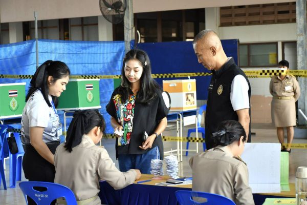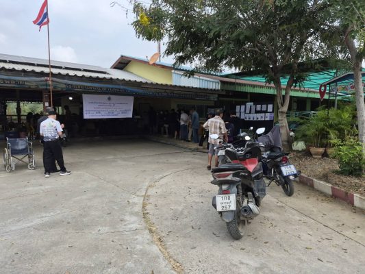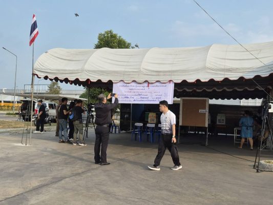 ขณะที่บริเวณหน้าหน่วยเลือกตั้ง เริ่มมีประชาชนทยอยมารอตรวจสอบรายชื่อและเตรียมตัวเข้าคูหา ซึ่งทางจังหวัดคาดการณ์ว่าจะมีผู้ออกมาใช้สิทธิเป็นจำนวนมาก เนื่องจากเป็นการเลือกตั้งสำคัญที่มีการออกเสียงประชามติควบคู่กันไปด้วย