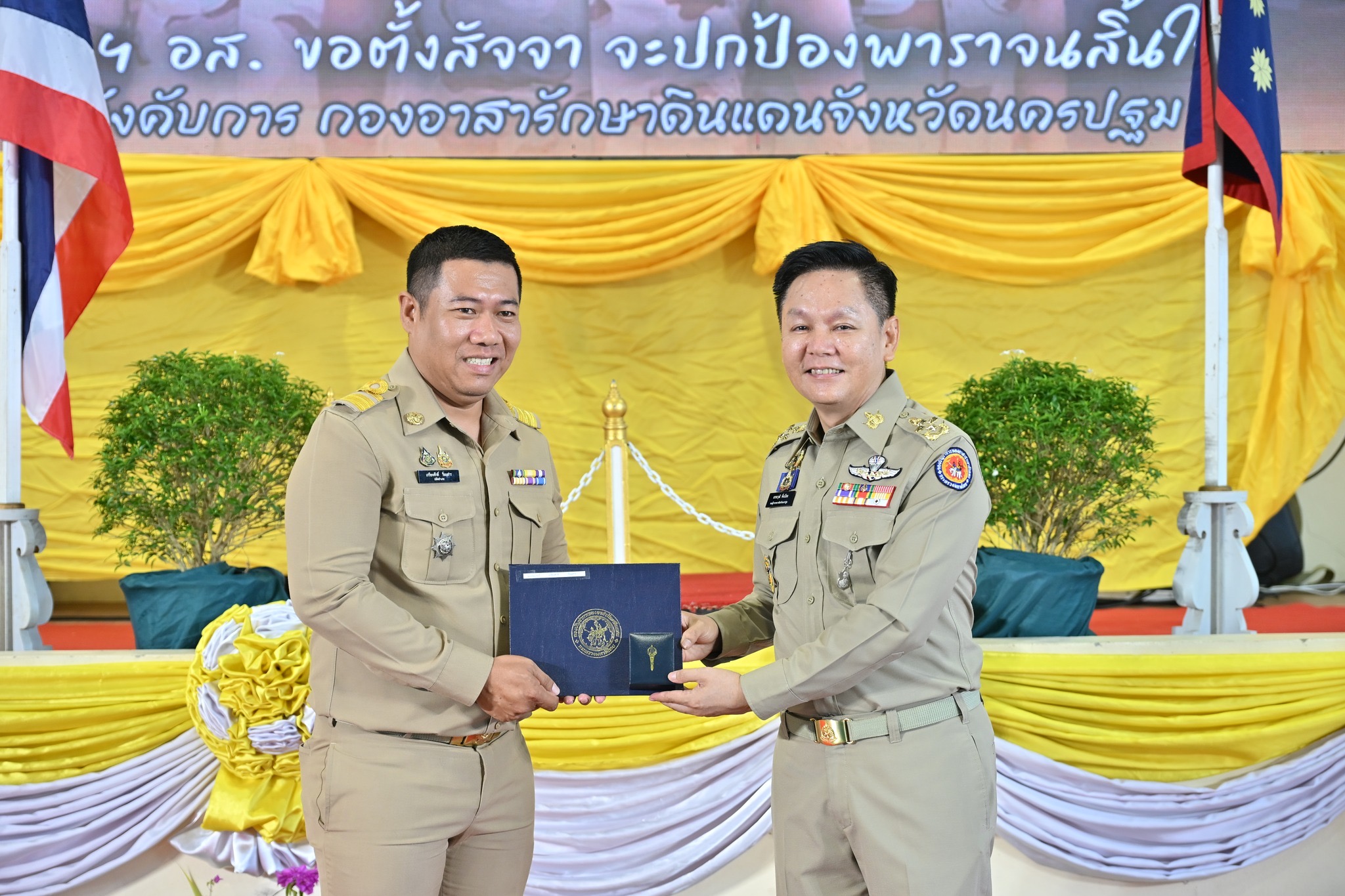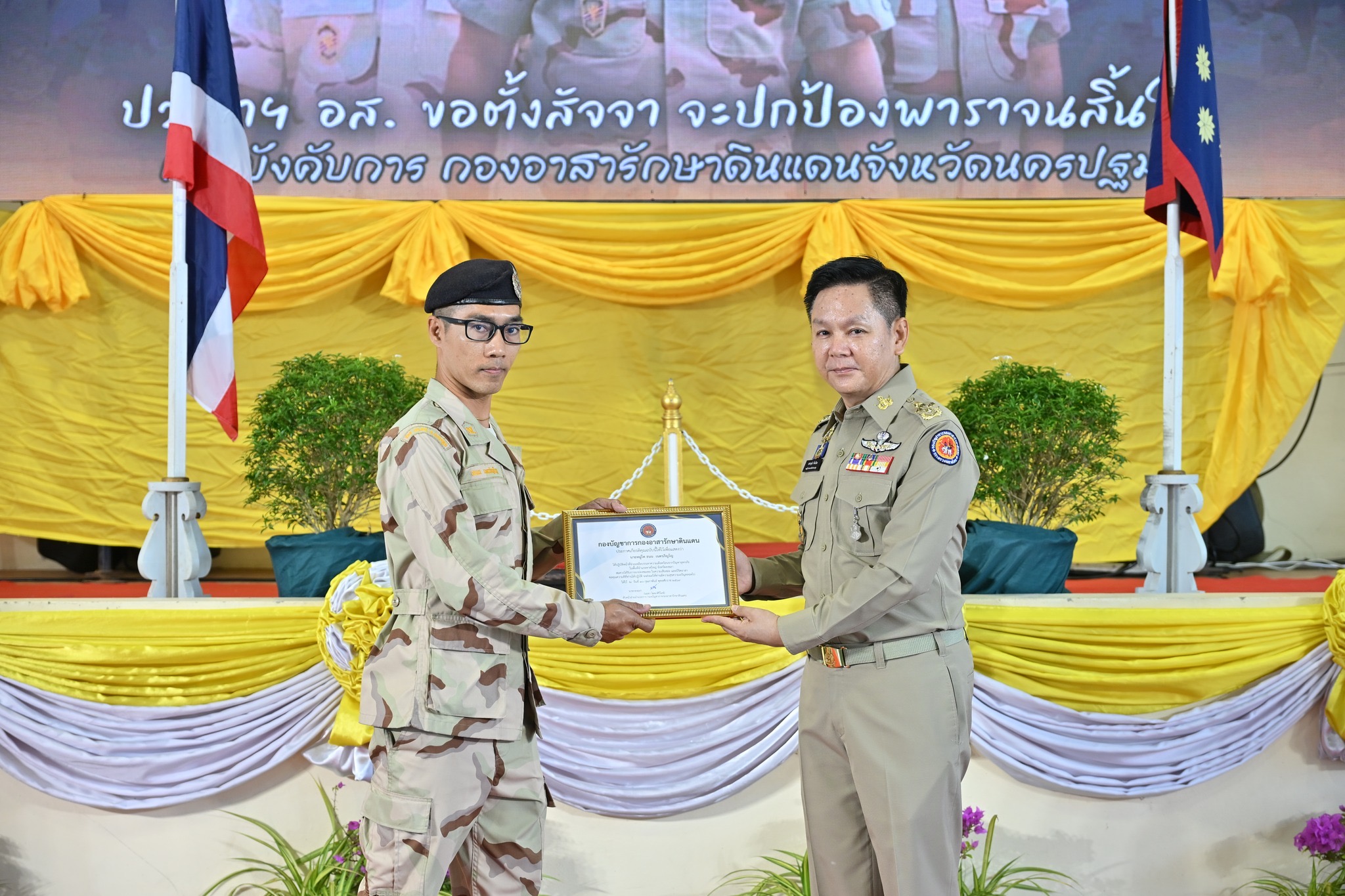 สมาชิกกองอาสารักษาดินแดนจังหวัดนครปฐม ร่วมกล่าวคำปฏิญาณตน เนื่องในวันคล้ายวันสถาปนากองอาสารักษาดินแดน ครบรอบ 72 ปี ประจำปี 2569