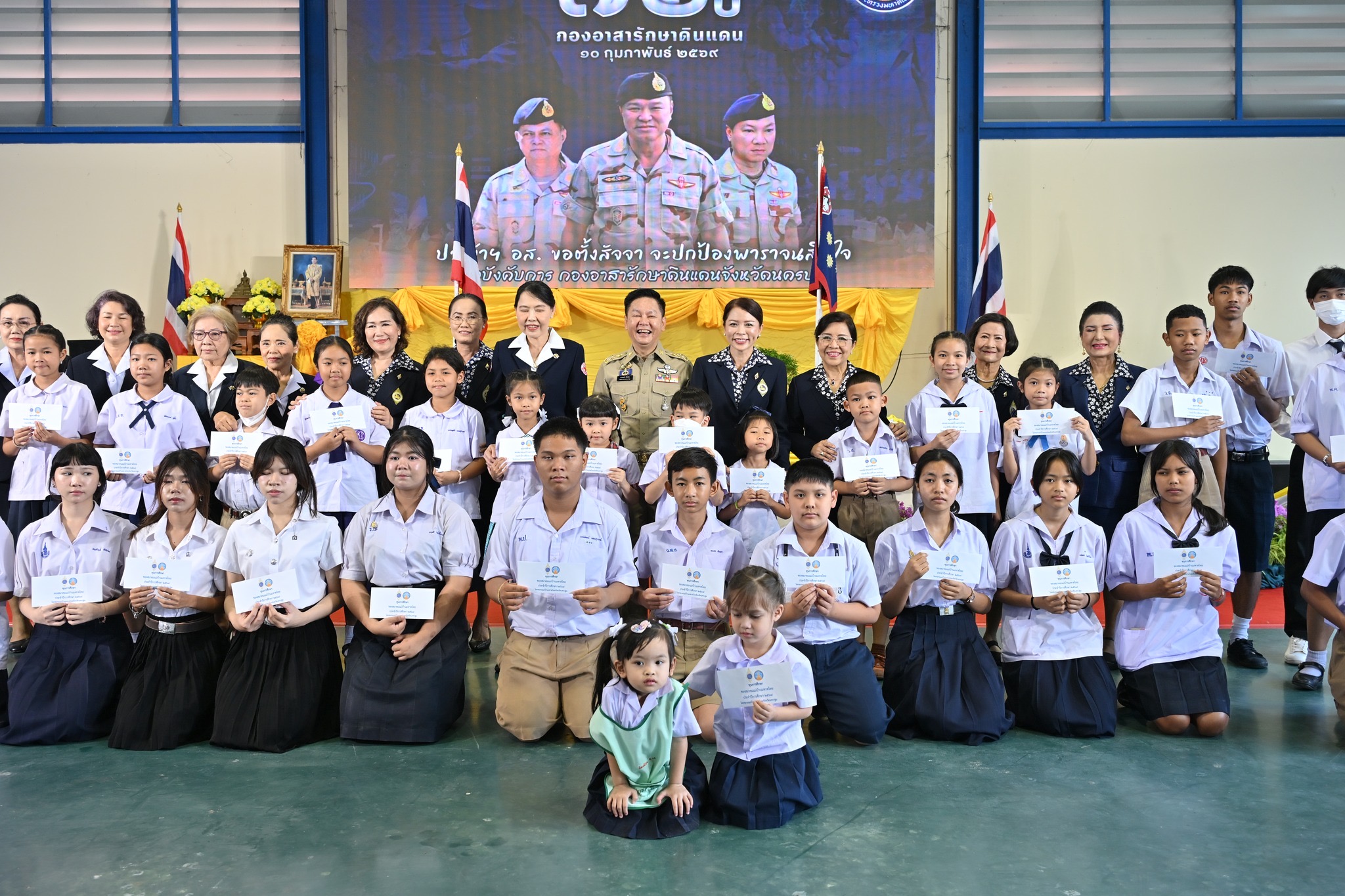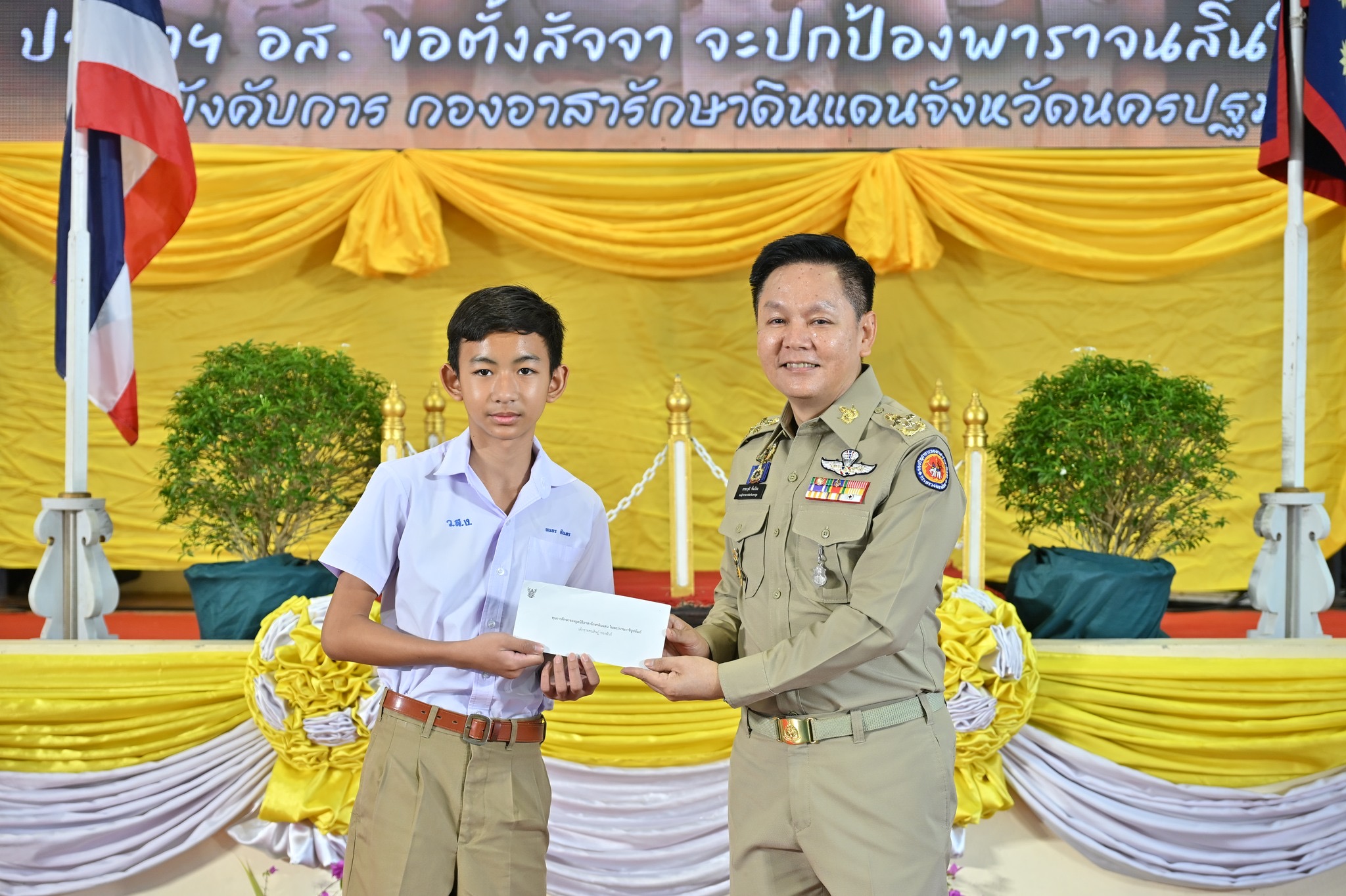 โอกาสนี้ รองผู้บังคับการกองอาสารักษาดินแดนจังหวัดนครปฐม พร้อมด้วยหัวหน้าส่วนราชการ ได้มอบทุนการศึกษามูลนิธิอาสารักษาดินแดนในพระบรมราชินูปถัมภ์ จำนวน 3 ทุน และทุนการศึกษาโดยสมาคมแม่บ้านมหาดไทย ตลอดจนผู้ให้การสนับสนุนทุนสมทบของชมรมแม่บ้านมหาดไทยจังหวัดนครปฐม จำนวน 51 ทุนๆ