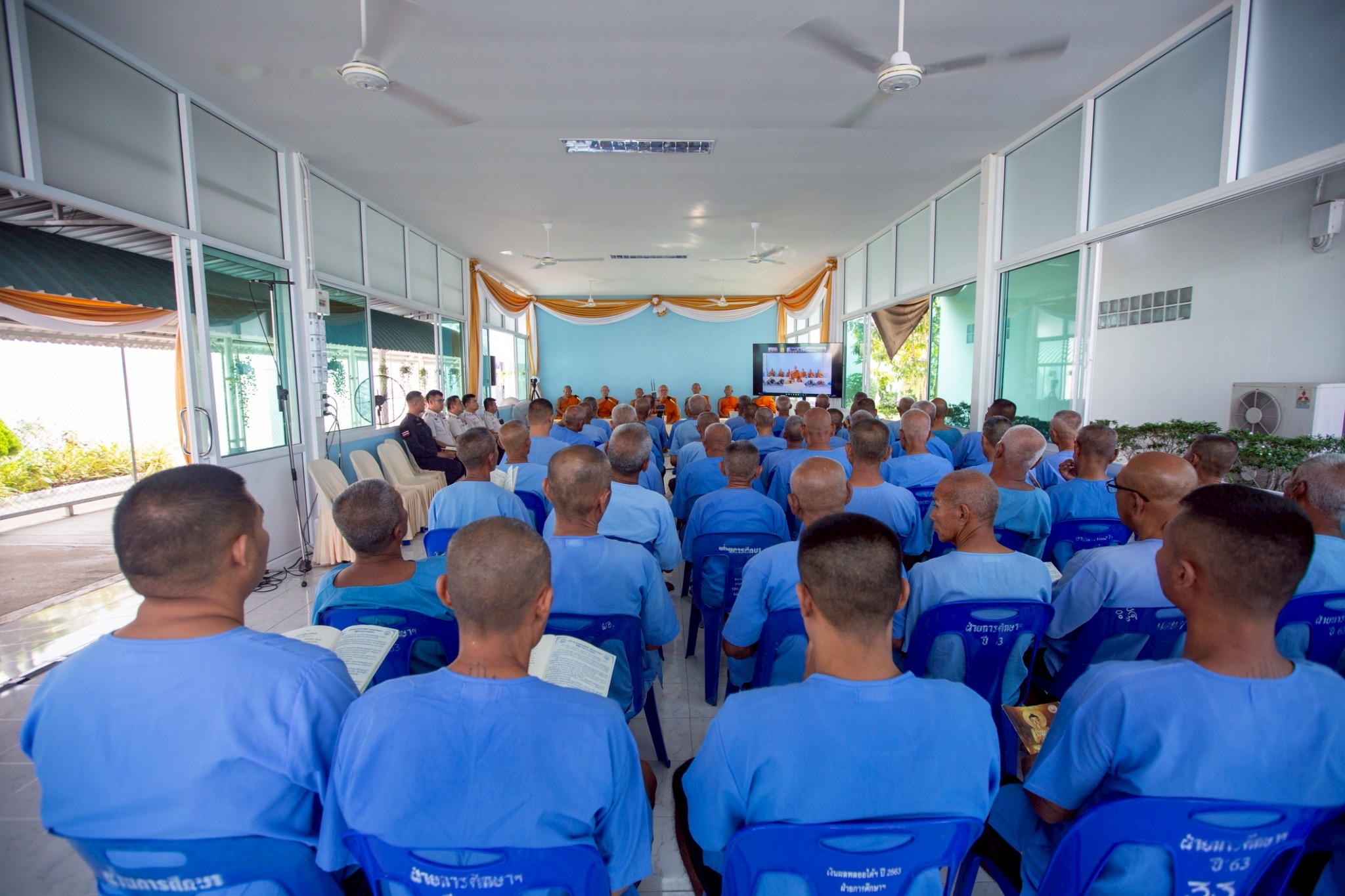 ในพิธี พระครูปลัดสิทธิวัฒน์ (หลวงพี่น้ำฝน) ได้นำคณะสงฆ์ ผู้บริหารข้าราชการและผู้ต้องขัง สวดมนต์ บทรัตนปริตร จากนั้นได้นำเรื่องราวพุทธประวัติ พระองคุลิมาลเถระ ตั้งแต่ครั้งที่ออกสังหารผู้คนก่อนจะมาพบองค์สมเด็จพระสัมมาสัมพุทธเจ้า จนได้เห็นแสงแห่งธรรม ก่อนจะขอบวชตามรอยพระพุทธองค์ และสำเร็จเป็นพระอรหันต์ ในที่สุด ซึ่งนำมาเปรียบกับผู้ที่ต้องโทษให้มีความมุ่งมั่น เรียนรู้และให้หลักการในการคิดและปฏิบัติตนโดยใช้หลัก คิด วิเคราะห์ แยกแยะ ภายใต้เหตุผลเป็นที่ตั้ง และนำคณะสงฆ์ซึ่งอดีตเคยต้องขังอยู่ที่เรือนจำนครปฐม ซึ่งเมื่อได้รับการปลดปล่อยภายหลังพ้นโทษและมีประสงค์ในการเข้ารับการบวชศึกษาทางธรรม จึงได้นำเข้าโครงการบวชฟรีไม่มีค่าใช้จ่าย วัดไผ่ล้อมฯ มาเป็นตัวอย่างแนวทางสำหรับผู้ที่เตรียมได้รับการปลดปล่อย รวมถึงให้แนวทางกับผู้ที่ยังคงต้องรับโทษให้มีวิธีคิดและให้คติธรรมตามแนวทาง “อยู่ให้เป็น เย็นให้พอ รอให้ได้”