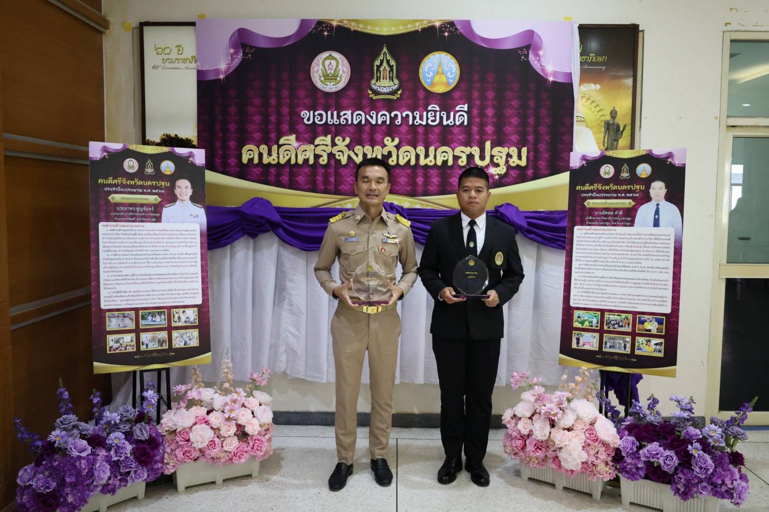โครงการคัดเลือก “คนดีศรีจังหวัดนครปฐม” ประจำปีงบประมาณ พ.ศ. 2568 กรมการศาสนา กระทรวงวัฒนธรรม ร่วมกับ จังหวัดนครปฐม ขับเคลื่อนดำเนินการโครงการคัดเลือกเพื่อยกย่องเชิดชูเกียรติบุคคล ที่ดำรงตนยึดมั่นในสถาบันชาติ ศาสนา และพระมหากษัตริย์ ปฏิบัติตนตามหลักคุณธรรม 5 ประการ คือ พอเพียง วินัย สุจริต จิตอาสา และกตัญญู อีกทั้ง       ยังเป็นผู้กระทำความดีและสร้างคุณประโยชน์ เพื่อส่วนรวม จนเป็นที่ประจักษ์และยอมรับของสังคม โดยมีผู้ที่ได้รับการคัดเลือก    ในปีงบประมาณ พ.ศ.2568 จำนวน 2 ราย ดังนี้