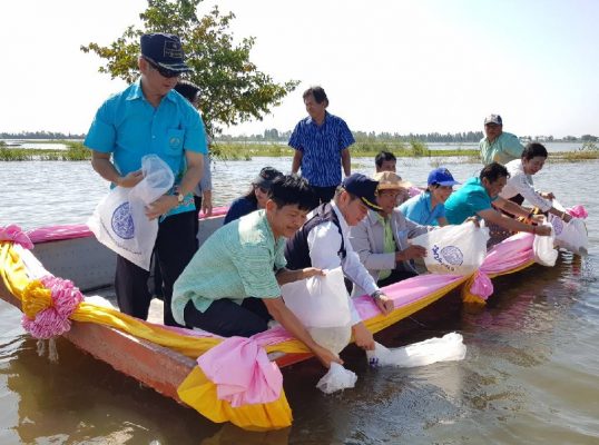 สำนักงานประมงจังหวัดสุพรรณบุรี ร่วมกับศูนย์วิจัยและพัฒนาประมงน้ำจืดสุพรรณบุรี ร่วมกันจัดพิธีปล่อยพันธุ์สัตว์น้ำเข้าทุ่ง สร้างความมั่นคงของแหล่งอาหาร และสร้างรายได้ชุมชน