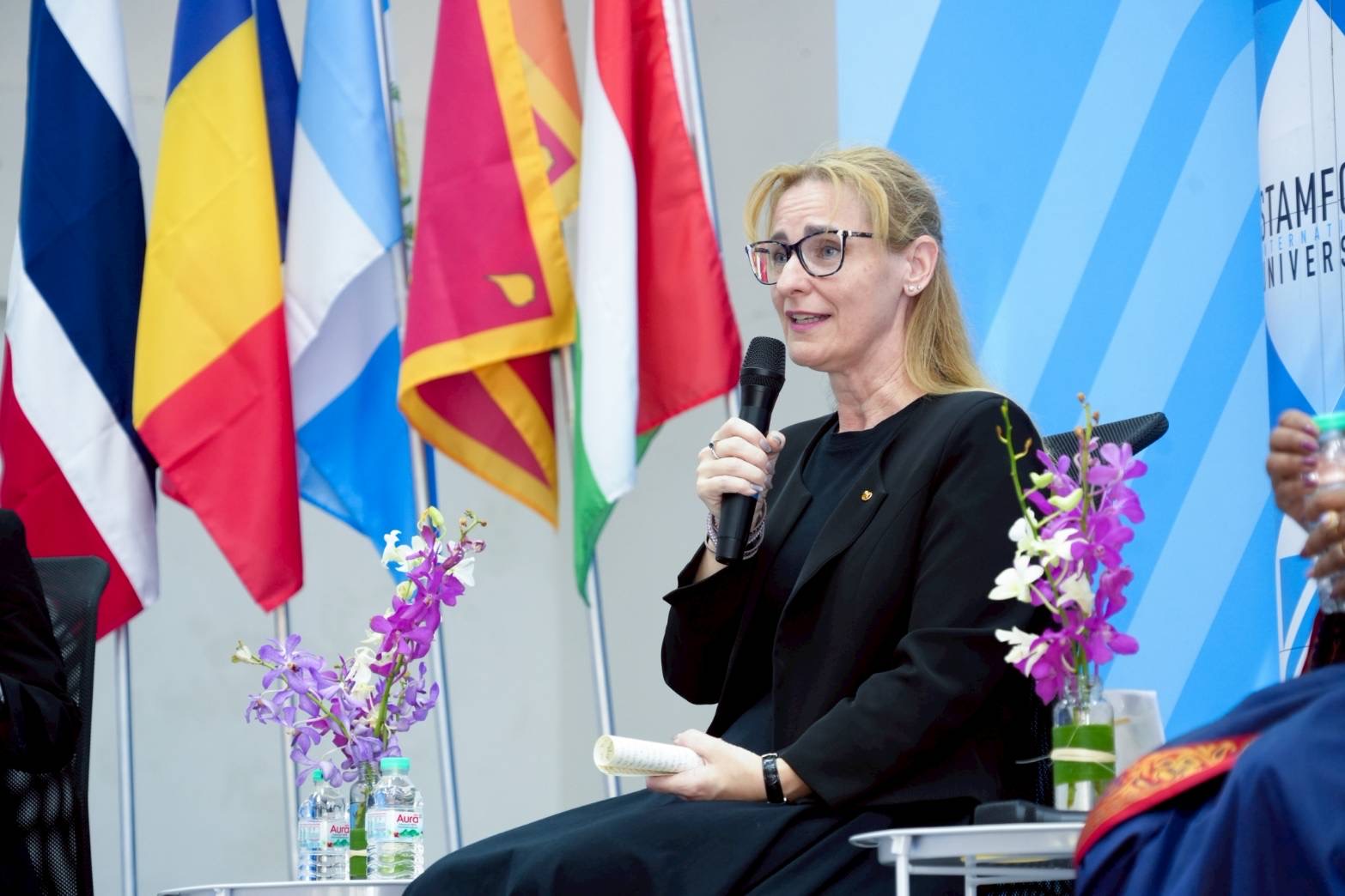 ลังกา) H.E. Mrs. Shirley Dennise Aguilar Barrera (เอกอัครราชทูตสาธารณรัฐกัวเตมาลา) H.E. Mrs. Daniela-Brîndușa Băzăvan (เอกอัครราชทูตโรมาเนีย) และ H.E. Ms. Szilvia Szalóki (เอกอัครราชทูตฮังการี) ภายในเวทีเสวนาผู้เข้าร่วมงานได้รับฟังมุมมองเกี่ยวกับบทบาทของสตรีในโลกการทูต ความท้าทายของผู้น าสตรีในบริบทสากล และความสำคัญของความร่วมมือระหว่างประเทศในยุคโลกาภิวัตน์ พร้อมเปิดโอกาสให้นักศึกษาและผู้เข้าร่วมงานได้