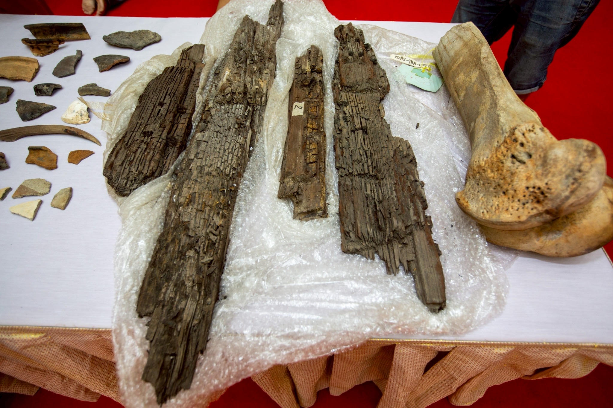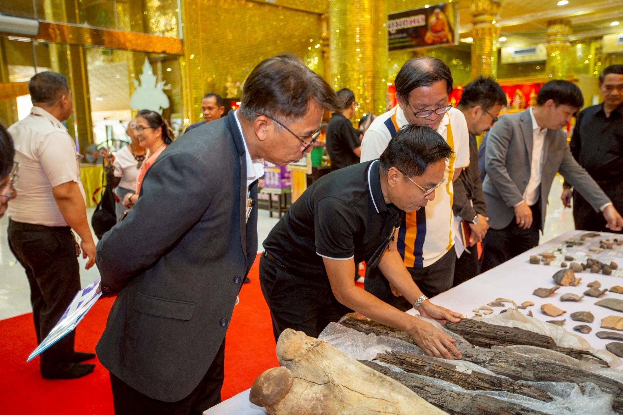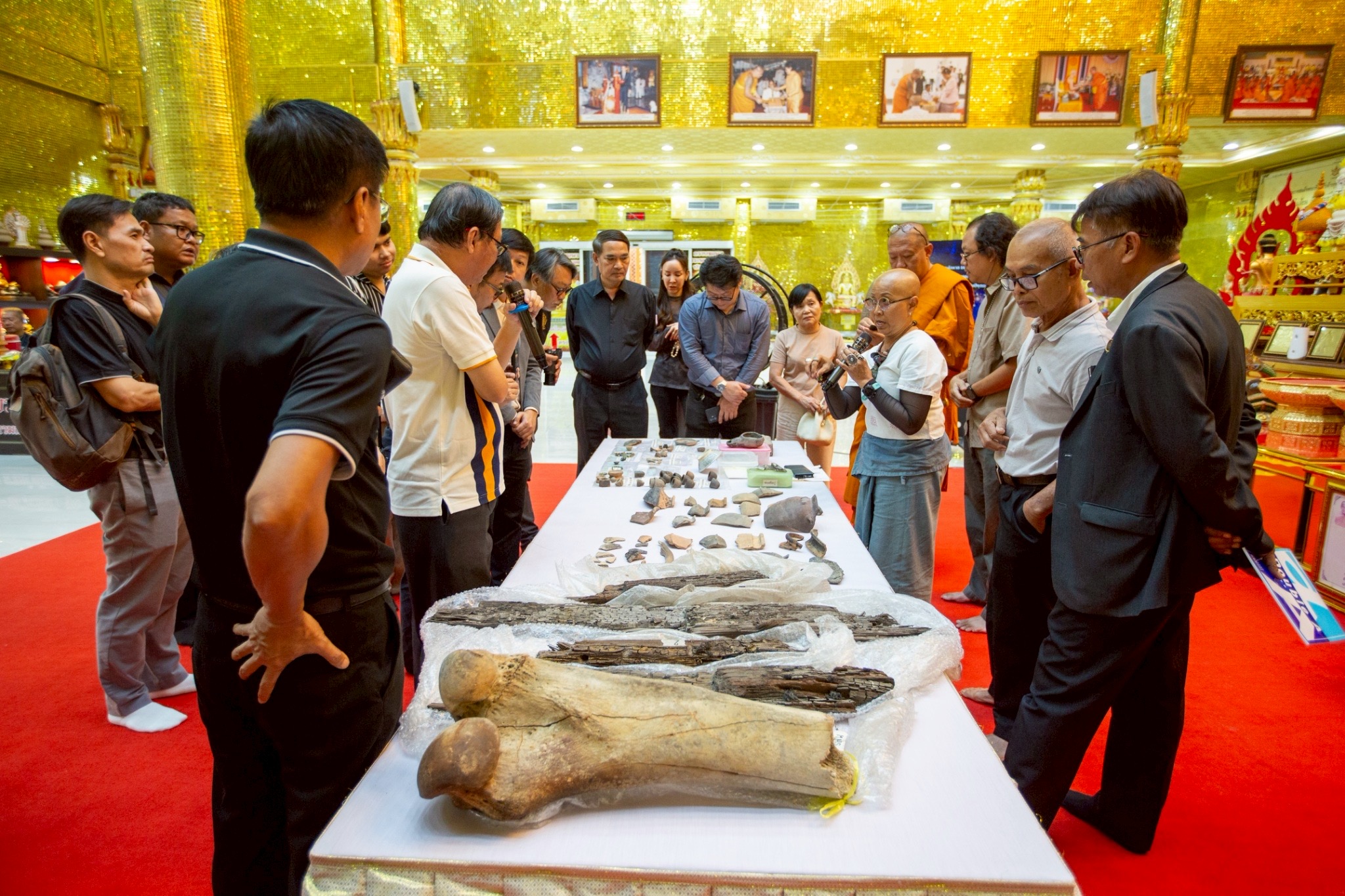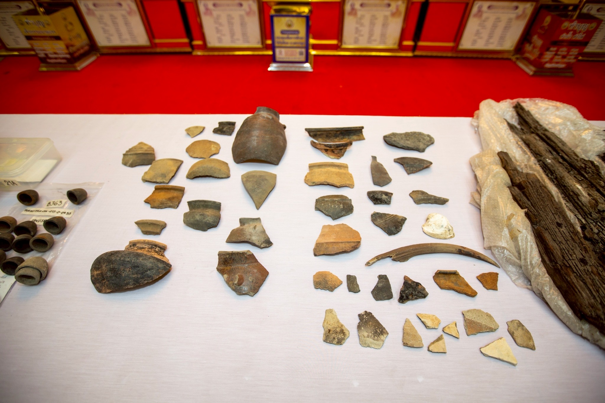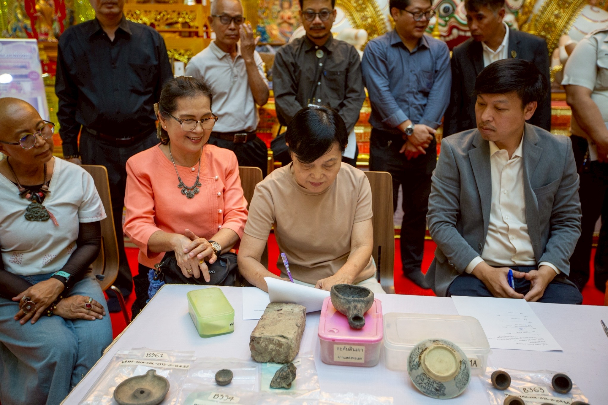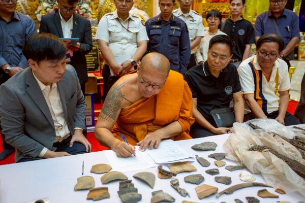 โดยในพิธีการส่งมอบ ได้มีการนำซากเรือโบราณ อายุไม่น้อยกว่า 1,200 ปี และของที่เป็นวัตถุสืบค้นทางประวัติศาสตร์ที่สำคัญหลายชิ้น อาทิ เศษกระเบื้อง เครื่องดินเผา เครื่องใช้ กระดูกสัตว์ โดยปรากฏเป็นของเก่าแก่ที่มีมาจากทั้ง ประเทศอินเดีย จีน และทางอาหรับ ซึ่งอยู่ในช่วงยุคอาณาจักรทวารวดี ที่จมอยู่ใต้น้ำภายในบริเวณ บึงกุ่ม-บึงบางช้าง บ้านสระอ้อ ต.ธรรมศาลา อ.เมือง จ.นครปฐม โดยนายไพบูลย์ (ปัจจุบันเสียชีวิต) ได้ค้นพบครั้งแรกเมื่อเดือน มิถุนายน 2558 และเป็นที่สนใจของนักโบราณคดีและกรมศิลปากรที่ได้ลงพื้นที่สำรวจติดตามข้อมูลไปแล้ว รวมถึงมีผู้พบวัตถุสืบค้นจากแหล่งที่พบดังกล่าวส่งข้อมูลไปให้ เครือข่ายประสานกับมหาวิทยาลัยเกียวโต ประเทศญี่ปุ่นได้ไปศึกษาถึงหน้าประวัติศาสตร์ครั้งใหม่ที่ปรากฏเรือโบราณชนิดนี้ในพื้นที่จังหวัดนครปฐม เป็นครั้งแรก ซึ่งเป็นข้อบ่งชี้ว่าเคยมีเรือโบราณเข้ามาถึงตัวเมืองนครปฐม และอยู่ห่างจากองค์พระปฐมเจดีย์ไม่กี่กิโลเมตร และมีการค้าการขายรวมถึงเป็นอาณาจักรที่ยิ่งใหญ่ในการเชื่อมโยงกับหลายอาณาจักร ซึ่งไม่เคยปรากฏหลักฐานที่ชัดเจนเช่นนี้มาก่อน