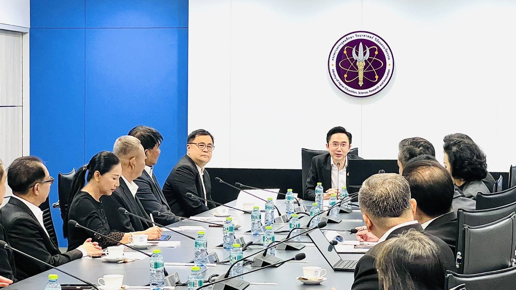 วันที่ 16 เมษายน 2569 รศ.ดร.โฆษิต ศรีภูธร อธิการบดี มทร.อีสาน ประธานที่ประชุมอธิการบดี มหาวิทยาลัยเทคโนโลยีราชมงคล (ทปอ.มทร.) รศ.ดร.อุดมวิทย์ ไชยสกุลเกียรติ อธิการบดี มทร.รัตนโกสินทร์ และรศ.ดร.สมหมาย ผิวสะอาด อธิการบดี มทร.ธัญบุรี เป็นผู้แทนจากที่ประชุมอธิการบดีมหาวิทยาลัยเทคโนโลยีราชมงคล (ทปอ.มทร.) พร้อมด้วย ผู้แทนจากที่ประชุมอธิการบดี มหาวิทยาลัยราชภัฏ (ทปอ.มรภ.) และผู้แทนจากที่ประชุมอธิการบดีแห่งประเทศไทย (ทปอ.) เข้าพบ ศ.ดร.ยศชนัน วงศ์สวัสดิ์ รองนายกรัฐมนตรี และรัฐมนตรีว่าการกระทรวงการอุดมศึกษา วิทยาศาสตร์ วิจัยและนวัตกรรม ณ ห้องรับรองสำนักงานรัฐมนตรี กระทรวงการอุดมศึกษา วิทยาศาสตร์ วิจัยและนวัตกรรม กรุงเทพมหานคร
