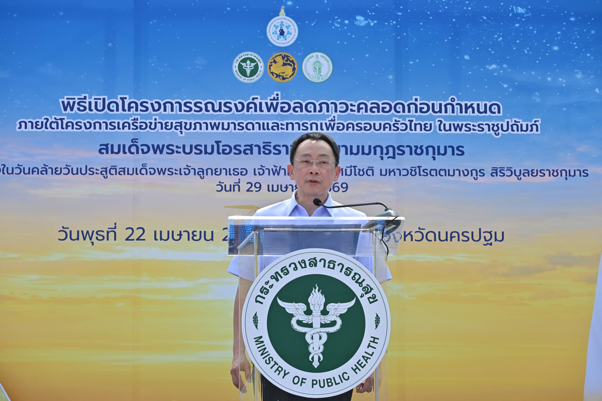 นายแพทย์สมฤกษ์ จึงสมาน ปลัดกระทรวงสาธารณสุข กล่าวว่า ปัญหาการคลอดก่อนกำหนด (ก่อนอายุครรภ์ 37 สัปดาห์) เป็นปัญหาสำคัญระดับประเทศที่ส่งผลกระทบต่อสุขภาพประชาชน กระทรวงสาธารณสุขจึงตั้งเป้าหมายลดอัตราการคลอดก่อนกำหนดให้เหลือน้อยกว่า ร้อยละ 8 ในปี 2570 เพื่อสนองพระราชประสงค์ของพระบาทสมเด็จพระเจ้าอยู่หัว องค์อุปถัมภ์โครงการเครือข่ายสุขภาพมารดาและทารกเพื่อครอบครัวไทยฯ นำร่อง 25 จังหวัด ภายใต้ 3 มาตรการสำคัญ คือ 1) สร้างความตระหนักรู้ถึงอันตรายของการคลอดก่อนกำหนดและสัญญาณเตือนให้แก่หญิงตั้งครรภ์และครอบครัว 2) ยกระดับให้ความรู้ผ่านโรงเรียนพ่อแม่ 3) ยกระดับฝากครรภ์คุณภาพด้วยการคัดกรอง 5 โรคเสี่ยง ได้แก่ เบาหวานขณะตั้งครรภ์ โรคความดันโลหิตสูงและครรภ์เป็นพิษโลหิตจาง โรคติดเชื้อในทางเดินปัสสาวะและช่องคลอด รวมถึงการดูแลสุขภาพช่องปากขณะตั้งครรภ์
