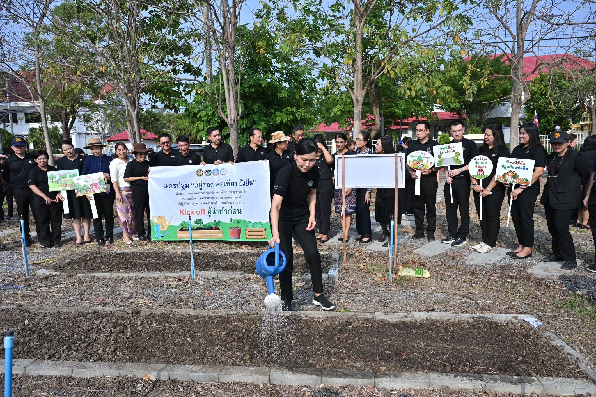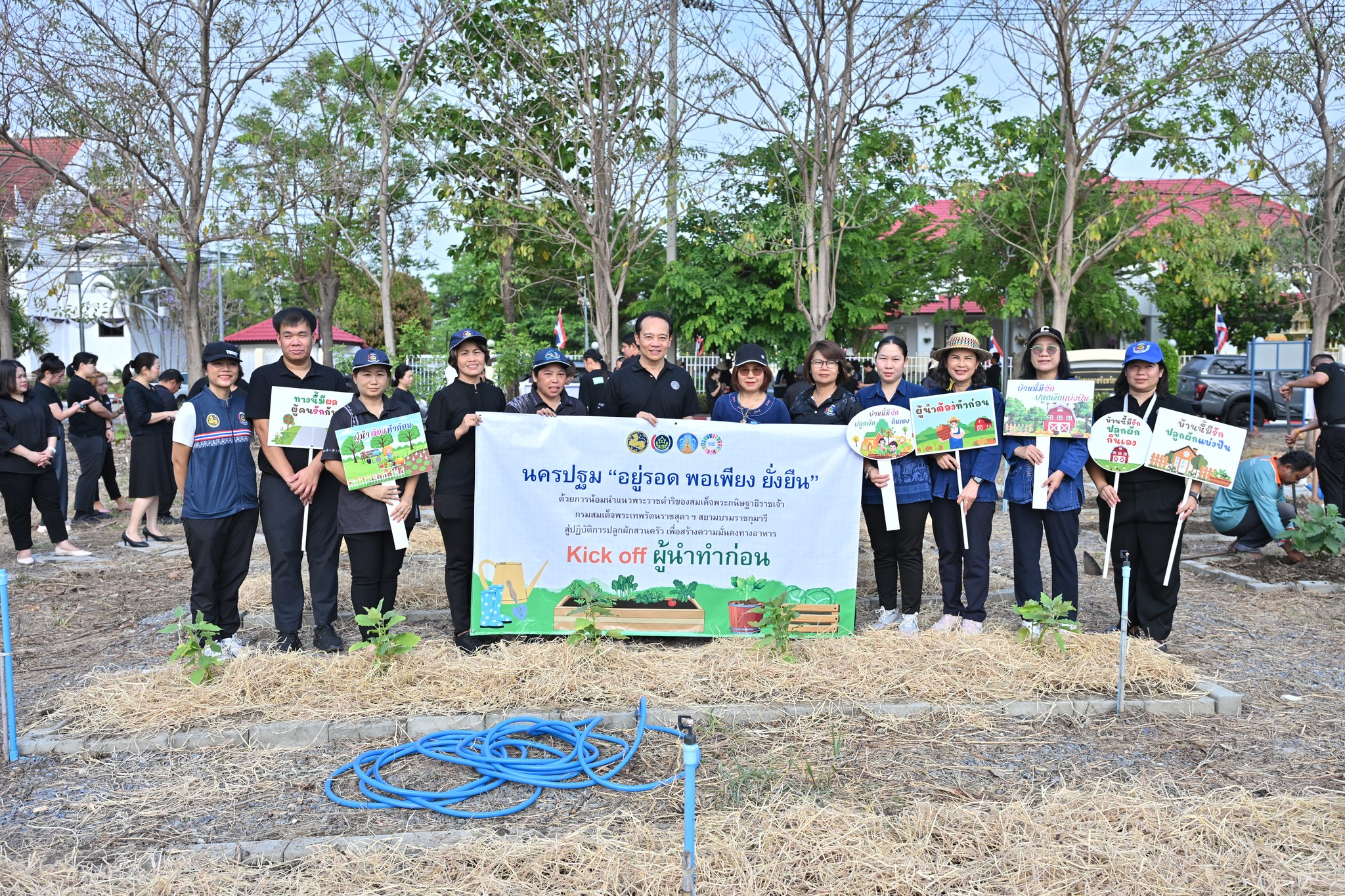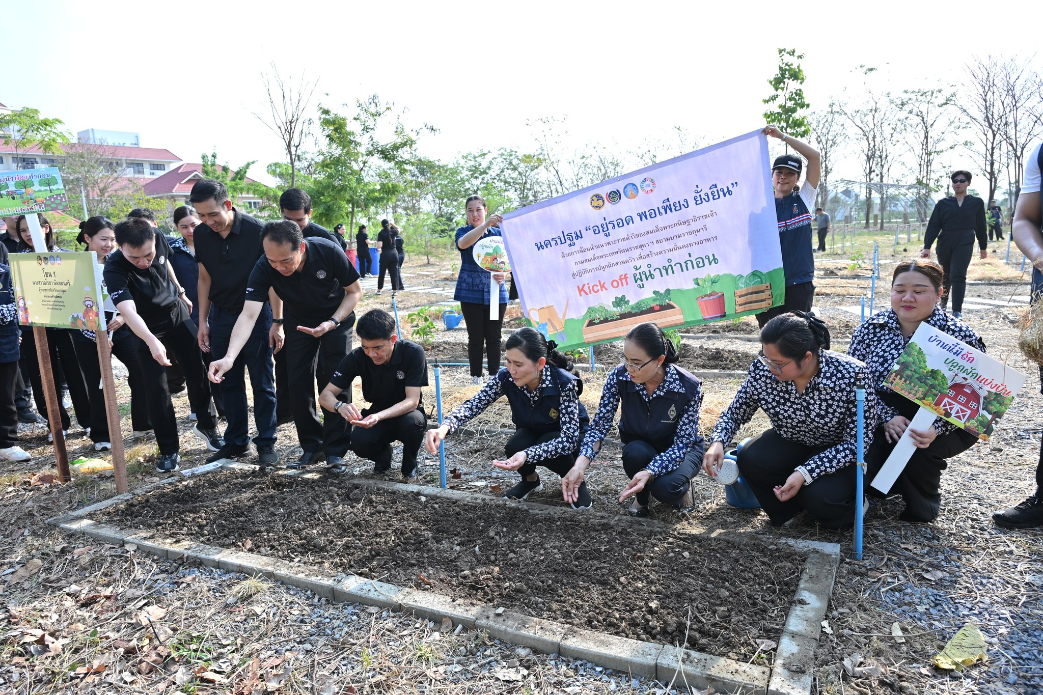 ผู้ว่าราชการจังหวัดนครปฐม นำส่วนราชการร่วมปฏิบัติการ quick win 90 วันปลูกผักสวนครัวเพื่อสร้างความมั่นคงทางอาหาร สู้ภัยวิกฤตด้วยวิถีพอเพียง กิจกรรม kick off ผู้นำทำก่อน