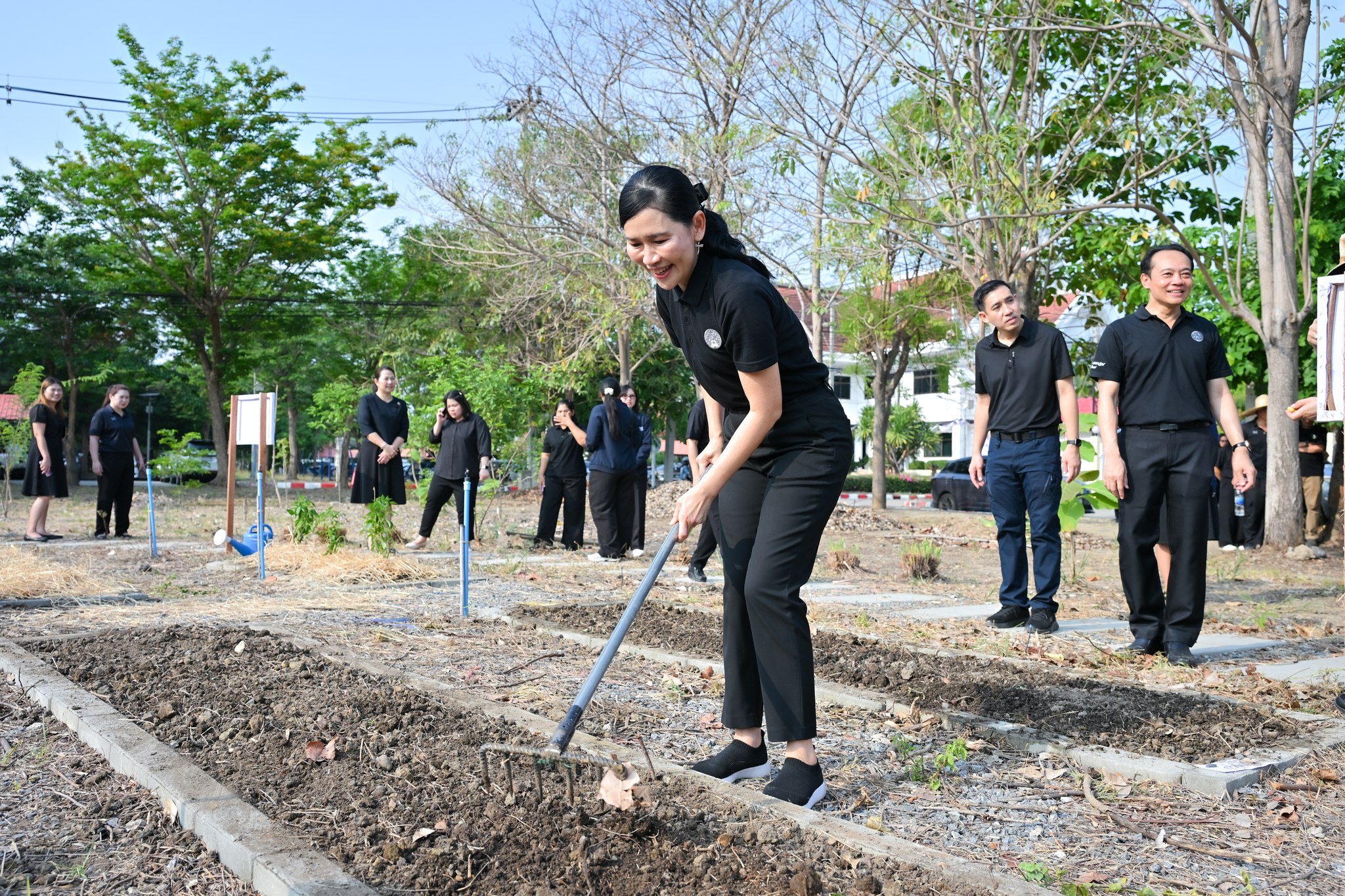โอกาสนี้ ผู้ว่าราชการจังหวัดนครปฐม พร้อมด้วยรองผู้ว่าราชการจังหวัด หัวหน้าส่วนราชการ ที่เข้าร่วมกิจกรรม ได้ร่วมกันปลูกผักสวนครัว อาทิ ผักบุ้ง ต้นสาระแหน่ ต้นผักชีฝรั่ง ยี่หร่า โหระพา และต้นมะเขือเปราะ เป็นต้น เพื่อเป็นสัญลักษณ์ของการเริ่มต้นสร้างแหล่งอาหารในครัวเรือน และขยายผลสู่ชุมชน สะท้อนพลังความร่วมมือของทุกภาคส่วน ที่พร้อมขับเคลื่อน “ความมั่นคงทางอาหาร” ให้เกิดขึ้นจริงในพื้นที่ โดยมุ่งสู่เป้าหมายให้ประชาชน “อยู่ได้ กินดี มีรายได้” และก้าวสู่ความยั่งยืนอย่างแท้จริงในอนาคต