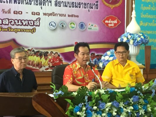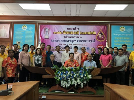 จ.สุพรรณบุรี แถลงข่าว แข่งขันเรือยาวประเพณีชิงถ้วยพระราชทานสมเด็จพระเทพรัตนราชสุดาฯ สยามบรมราชกุมารี ครั้งที่ 15 ประจำปี 2561 วันที่ 10-11 พฤศจิกายน 2561 ณ แม่น้ำท่าจีน บริเวณหน้าวัดสวนหงส์ อำเภอบางปลาม้า