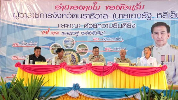 นายธรรมรงค์ คงวัดใหม่ รองผู้ว่าราชการจังหวัดนราธิวาส กล่าวว่า เพื่อให้การบริหารราชการเป็นไปอย่างมีประสิทธิภาพ เป็นไปในทิศทางเดียวกัน จะต้องสร้างความเข้าใจในแนวทางการพัฒนาจังหวัดเพื่อขับเคลื่อนงานไปด้วยกัน โดยผู้ว่าราชการจังหวัดนราธิวาส มีหลักการทำงานตามยุทธศาสตร์ชาติ 20 ปี แผนการปฏิรูปประเทศ แผนพัฒนาเศรษฐกิจและสังคมแห่งชาติ ฉบับที่ 12 ที่เน้นการพัฒนา “ราชการรู้อะไร ประชาชนรู้อย่างนั้น” เป็นการสร้างการรับรู้ร่วมกัน แต่ในกรณีการร้องเรียน ร้องขอ หรือร้องทุกข์ที่เกิดขึ้น ส่วนใหญ่มาจากความไม่เข้าใจในแนวทางการพัฒนาขององค์กรต่างๆ