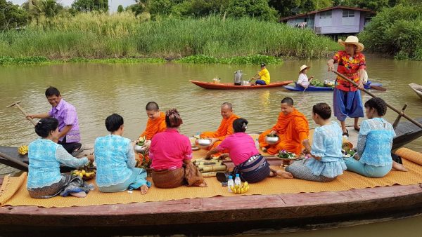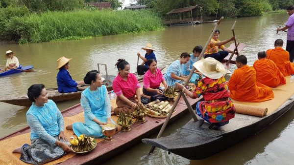 สำหรับวันที่ 18 พฤศจิกายน 2561 ชาวบ้านและประชาชนจะนำอาหารหวานคาว พร้อมทั้งข้าวสารอาหารแห้งมาใส่บาตรพระสงฆ์ โดยจะนำเรือมาจอดลอยลำต่อกันสองฝั่งแม่น้ำท่าจีน เพื่อรอทำบุญตักบาตรพระสงฆ์ที่มารับบิณฑบาตโดยการพายเรือและรับบิณฑบาตกลางแม่น้ำท่าจีน และมีการประกวดขบวนเรือใส่บาตร การแต่งกายย้อนยุคนั่งเรือแจว (ตักบาตรย้อนยุค) และการแข่งขันเรือพายพื้นบ้านพร้อมทั้งร่วมกราบนมัสการหลวงพ่อศักดิ์สิทธิ์วัดป่าพฤกษ์ และชมพิพิธภัณฑ์เรือภายในวัดป่าพฤกษ์ ซึ่งมีเรือโบราณที่สวยงามและน่าสนใจภายในพิพิธภัณฑ์เป็นจำนวนมาก โดยในวันแถลงข่าว กองตลาดภาคกลาง ภูมิภาคภาคกลาง ททท. นำโดย นายชัยวิทย์ เผื่อนอุดม หนง.แผนปฎิบัติการตลาดภาคกลาง ได้ร่วมจัดนำคณะสื่อมวลชนจากกรุงเทพฯ เข้าร่วมรับฟังการแถลงข่าวประชาสัมพันธ์การจัดงานดังกล่าว