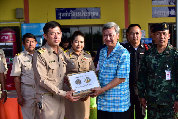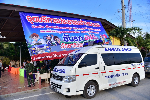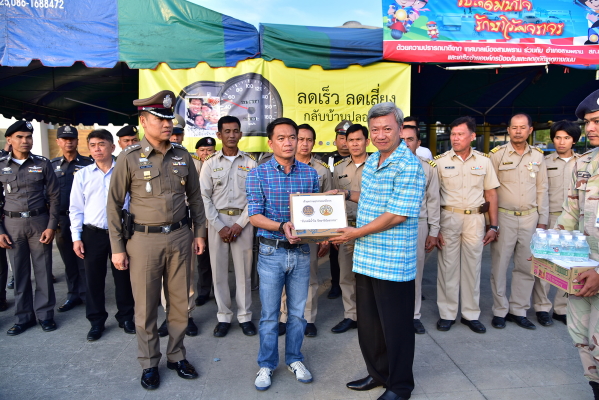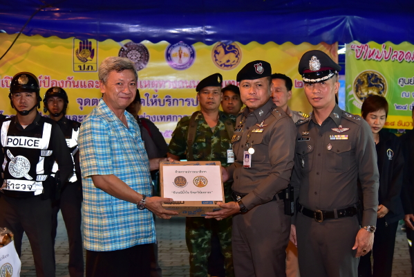 โอกาสนี้ ผู้ว่าราชการจังหวัดนครปฐม ได้มอบน้ำดื่ม กาแฟ นม และน้ำผลไม้ เพื่อเป็นขวัญและกำลังใจแก่เจ้าหน้าที่ผู้ปฏิบัติงานประจำจุดตรวจและจุดบริการประชาชน ตลอด 24 ชั่วโมง
