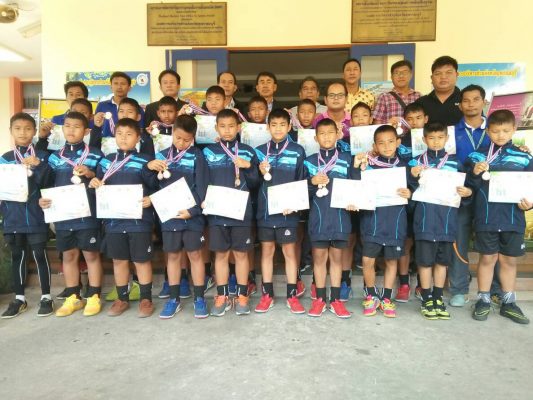 ที่ห้องประชุม สภา อบจ.สุพรรณบุรี นายบุญชู จันทร์สุวรรณ นายก อบจ.สุพรรณบุรี พร้อมด้วยนายวิทยา บุณยพัชรินทร์ ผู้ประสานงาน อบจ.สุพรรณบุรี ให้การต้อนรับและให้กำลังใจนายธีรพร อายุวัฒน์ ผอ.รร.ภาวนาภิมณฑ์พิทยา อ.อู่ทอง นายก้อง ทับโชติ ผู้ฝึกสอนฯ และนักกีฬาฟุตบอลชายรุ่น อายุ 12 ปี โรงเรียนภาวนาภิมณฑ์พิทยา อ.อู่ทอง ในโอกาสคว้าแชมป์ การแข่งขันกีฬากลุ่มโรงเรียนการกุศลของวัดในพระพุทธศาสนาแห่งประเทศไทย ปรองดองสมานฉันท์ แข่งขันกีฬา 4 ภาค ครั้งที่ 10 นครพิงค์เกมส์ ที่สนามกีฬาสมโภชเชียงใหม่ 700 ปี อ.แม่ริม จ.เชียงใหม่