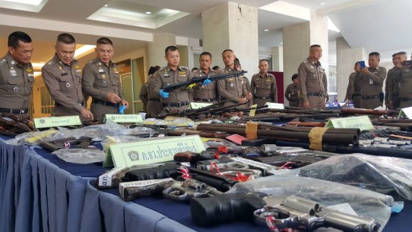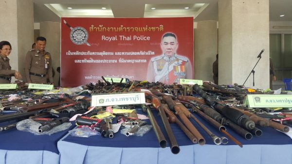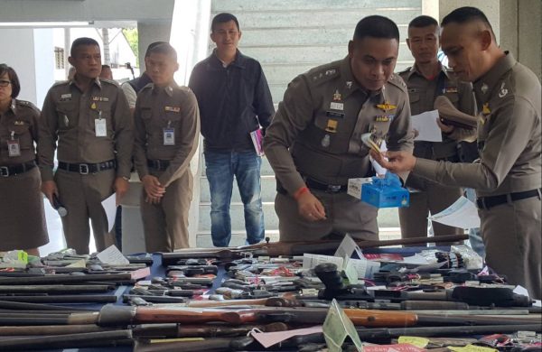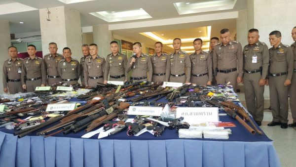 อาวุธปืน จับกุม 336 ราย ผู้ต้องหา 339 คน ของกลาง อาวุธปืนมีทะเบียน จำนวน 75 กระบอกอาวุธปืนไม่มีทะเบียน 249 กระบอก รวมอาวุธปืน 324 กระบอก กระสุนปืน จำนวน 985 นัด