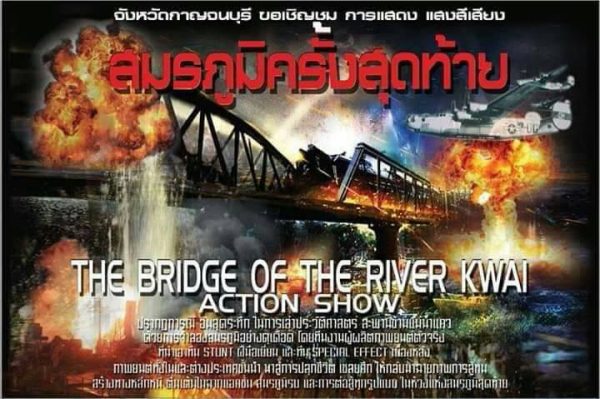 นายสรวุฒิ จงสกุล นายกสมาคมสื่อมวลชนจังหวัดกาญจนบุรี ได้ กล่าวต่อว่า การจัดงานสัปดาป์สะพานข้ามแม่น้ำแควและงานกาชาดจังหวัดกาญจนบุรี ทางนายจีระเกียรติ ภูมิสวัสดิ์ ผู้ว่าราชการจังหวัดกาญจนบุรี ได้จัดกิจกรรมการแสดงแสง สี เสียง”สมรภูมิรบครั้งสุดท้าย” ซึ่งเป็นเรื่องราวในเหตุการณ์เกี่ยวกับการสู้รบในสมัยสงครามมหาบูรพาเอเซียหรือที่ เรามักเรียกอีกชื่อหนึ่งของสงครามดังกล่าวว่า “สงครามโลกครั้งที่ 2 ” ระหว่างทหารฝ่ายสัมพันธมิตรกับทหารญี่ปุ่น “เส้นทางรถไฟและสะพานข้ามแม่น้ำแคว” ถือได้ว่าเป็นเส้นทางรถไฟสายมรณะ ที่มีความสำคัญอย่างยิ่วในประวัติศาสตร๋ของการสู้รบดังกล่าว หนึ่งหมอนไม้ที่รองรางรถไฟเหมือนกับหนึ่งชึวิตของเหล่าเชลยศึกที่ทหารญี่ปุ่นเกณฑ์มาทำการก่อสร้าง เส้นทางรถไฟสายมรณะ” สายนี้ขึ้นทึ่บริเวณสะพานข้ามแม่น้ำแควแห่งนี้ โดยทางจังหวัดกาญจนบุรีได้เปิดให้พี่น้องประชาชนชาวกาญจนบุรีรวมถึงนักท่องเทึ่ยวทั้งชาวไทยและชาวต่างชาติได้ร่วมกันรำลึกและไว้อาลัยให้กับเหล่าเชลยศึกที่ต้องมาสูญเสียชีวิตลงกับการก่อสร้างเส้นทางรถไฟสายมรณะและสะพานข้ามแม่น้ำแควแห่งนี้ได้ในการจัดการแสดงแสง สี เสียงดังกล่าวได้ในวันดังกล่าวเวลา 19.00.ของ ทุกวันยกเว้นวันที่ 30, 1 และ 7 จะเปิดแสดงแสง สี เสียงเพิ่มเป็น 2 รอบๆแรก 19.00 น. และรอบที่ 2 ในเวลา 20.30 น.