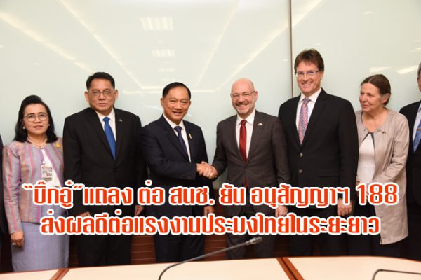 วันนี้ (29 พ.ย. 61) พลตำรวจเอก อดุลย์ แสงสิงแก้ว รัฐมนตรีว่าการกระทรวงแรงงาน เป็นประธานการแถลงข่าวประเด็นการให้สัตยาบันอนุสัญญาองค์การ แรงงานระหว่างประเทศ ฉบับที่ 188 ว่าด้วยการทำงานในภาคการประมง พ.ศ.2550 (ค.ศ. 2007) โดยมี นายเกรม บักเลย์ (Mr.Graeme Buckley) ผู้อำนวยการสำนักงานแรงงานระหว่างประเทศ (ILO) ประจำประเทศไทย กัมพูชา และลาว นายจูเซปเป บูซินี่ รองหัวหน้าคณะผู้แทนสหภาพยุโรปประจำประเทศไทยนายจรินทร์ จักกะพาก ปลัดกระทรวงแรงงาน นางเพชรรัตน์ สินอวย อธิบดีกรมการจัดหางาน พร้อมด้วยผู้บริหารระดับสูงของกระทรวงแรงงานร่วมแถลงข่าวในครั้งนี้ด้วย ณ ห้องประชุม ศ.นิคม จันทรวิทุร ชั้น 5 อาคารกระทรวงแรงงาน โดยรัฐมนตรีว่าการกระทรวงแรงงานกล่าวว่า สภานิติบัญญัติแห่งชาติได้ลงมติเห็นชอบให้กระทรวงแรงงานดำเนินการให้สัตยาบันอนุสัญญาองค์การ แรงงานระหว่างประเทศ ฉบับที่ 188 ว่าด้วยการทำงานในภาคการประมง พ.ศ.2550 (ค.ศ. 2007) โดยไทยจะเป็นประเทศแรกในอาเซียน และในภูมิภาคเอเชีย ที่ให้สัตยาบันต่ออนุสัญญาฉบับดังกล่าว เพื่อเป็นการส่งสัญญาณที่ชัดเจนไปทั่วโลกได้ว่า ณ วันนี้ ไทยมีความมุ่งมั่นที่จะยกระดับมาตรฐาน การคุ้มครองดูแลแรงงาน ทั้งชาวไทยและชาวต่างชาติ ในภาคประมงของไทย ให้ดียิ่งขึ้นเทียบเท่า มาตรฐานสากล ซึ่งจะทำให้ภาคประมงของไทยได้รับการยอมรับ มีภาพลักษณ์ที่ดี และจะเป็นส่วนหนึ่ง ของมาตรการสำคัญในการช่วยแก้ไขปัญหาการขาดแคลนแรงงานประมงไทยในขณะนี้ รวมถึงจะส่งผล ต่อภาพรวมด้านเศรษฐกิจการค้าระหว่างประเทศในสินค้าอาหารทะเลของไทยที่ปัจจุบันมีมูลค่าส่งออก เฉลี่ยปีละสองแสนล้านบาทด้วย เพราะจะช่วยเพิ่มความมั่นใจให้กับผู้บริโภคสินค้าประมงไทยได้ว่า สินค้าของเราจะเป็นสินค้าที่ผลิตอย่างมีจริยธรรมและมีธรรมาภิบาล