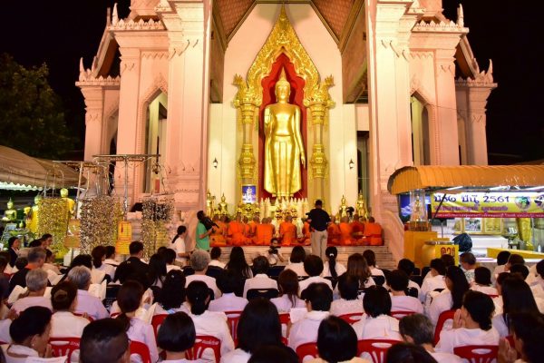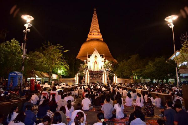 วันที่ 31 ธันวาคม 2560 เวลา 22.00 น. ที่บริเวณหน้าพระร่วงโรจนฤทธิ์ องค์พระปฐมเจดีย์ อำเภอเมือง จังหวัดนครปฐม นายชาญนะ เอี่ยมแสง ผู้ว่าราชการจังหวัดนครปฐม นำหัวหน้าส่วนราชการ ข้าราชการจากหน่วยงานต่างๆ นักเรียน นักศึกษา และพุทธศาสนิกชนชาวจังหวัดนครปฐมเป็นจำนวนมาก ร่วมกิจกรรมสวดมนต์ข้ามปี ถวายเป็นพระราชกุศล เสริมสิริมงคลทั่วไทย ส่งท้ายปีเก่าวิถีไทย ต้อนรับปีใหม่วิถีธรรม พุทธศักราช 2561 โดยผู้ว่าราชการจังหวัดนครปฐม จุดธูปเทียนบูชาพระรัตนตรัย จุดธูปเทียนเครื่องทองน้อย และเปิดกรวยกระทงดอกไม้ถวายราชสักการะ หน้าพระบรมฉายาลักษณ์ สมเด็จพระเจ้าอยู่หัวมหาวชิราลงกรณ บดินทรเทพยวรางกูร จากนั้น พระสงฆ์นำพุทธศาสนิกชนเจริญพระพุทธมนต์ และเจริญจิตตภาวนา ถวายเป็นพระราชกุศล แด่สมเด็จพระเจ้าอยู่หัวมหาวชิราลงกรณ บดินทรเทพยวรางกูร ตลอดจนสมเด็จพระบูรพมหากษัตริยาธิราช พระบรมวงศานุวงศ์ทุกพระองค์ และสวดมนต์เพื่อความเป็นสิริมงคลแก่ชีวิต ครอบครัว สังคม และประเทศชาติ ให้มีความสงบสุขร่มเย็นตลอดปีใหม่นี้
