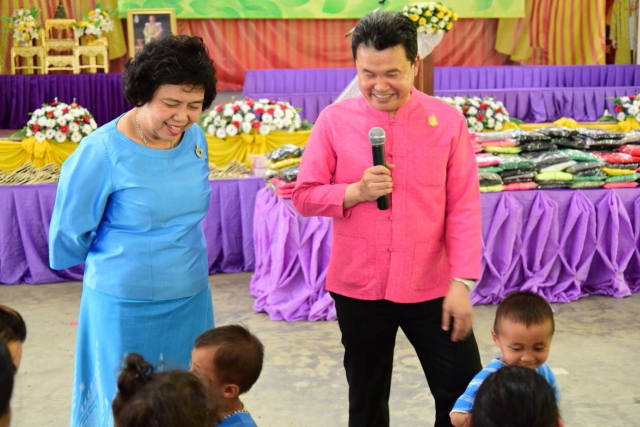 นอกจากนี้ อธิบดี สถ. ได้กล่าวฝากให้ท่านนายอำเภอ ท่านท้องถิ่นอำเภอ ท่านนายก อปท. ทั้ง 7 แห่ง ช่วยกันพัฒนาและส่งเสริมการศึกษา พัฒนาทรัพยากรมนุษย์ในพื้นที่ด้วยการช่วยกันจัดสร้างสนามเด็กเล่นสร้างปัญญา ในศูนย์พัฒนาเด็กเล็ก (ศพด.) หรือในเขตชุมชน รวมถึงช่วยกันส่งเสริมการอ่าน ช่วยกันดูแลเรื่องโภชนาการและอาหาร ให้เด็กๆได้รับสารอาหารครบทุกหมู่ การบริโภคไข่ทุกวัน รวมทั้งการให้ความรักความอบอุ่นด้วย