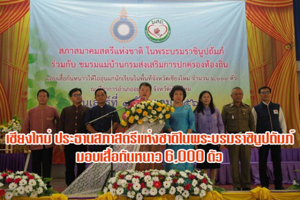 เชียงใหม่ ประธานสภาสตรีแห่งชาติในพระบรมราชินูปถัมภ์ มอบเสื้อกันหนาว 6,000 ตัว ให้ไออุ่นและอุปกรณ์การเรียนให้แก่นักเรียนในพื้นที่จังหวัดเชียงใหม่