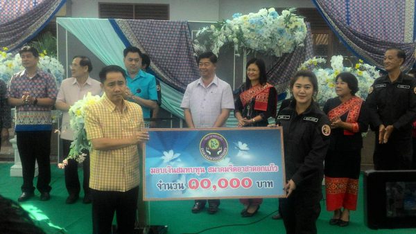ด้านนางพชรพรรณ มาตรศรี ประธานคณะกรรมการพัฒนาสตรีอำเภออู่ทองในนามตัวแทนของคณะกรรมการ รู้สึกเป็นเกียรติ กล่าวว่าพิธีเปิด “ศูนย์รวมสินค้าชุมชน (หัตถกรรมผ้าทออู่ทอง)และ“ศูนย์ประสานงานสมาคมจิตอาสาดอกแก้ว” ครั้งนี้สืบเนื่องจากคณะกรรมการพัฒนาสตรีอำเภออู่ทอง ได้สนับสนุนส่งเสริมการประกอบอาชีพของสมาชิกสตรีกระตุ้นให้สตรีมีส่วนร่วมในการดำเนินกิจกรรมทางสังคม มีความคิดริเริ่ม ใช้เวลาว่างให้เกิดประโยชน์ และมีส่วนรับผิดชอบในการพัฒนาอาชีพ ให้ชุมชน มีความเข้มแข็ง สามารถพึ่งพาตนเองได้ อย่างมั่นคง และยั่งยืน จึงประสานพลังกันจัดตั้งเป็น “ศูนย์รวมสินค้าชุมชน (หัตถกรรมผ้าทออู่ทอง)ขึ้น ก่อนพิธีเปิด มีพระสงฆ์ที่มาเข้าปริวาสกรรม กว่า 100 รูป ได้ออกมารับบิณฑบาตให้ผู้ที่มาร่วมงานได้ทำบุญใส่บาตรเพื่อความเป็นสิริมงคล