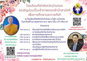ขอเชิญร่วมเป็นเจ้าภาพทอดผ้าป่าสามัคคี เพื่อการศึกษาและการกีฬา ณ โรงเรียนกีฬาจังหวัดอ่างทอง