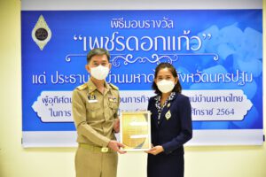 จังหวัดนครปฐม จัดพิธีมอบแบบลายผ้าพระราชทาน “ผ้าลายสิริราชพัสตราภรณ์” ในสมเด็จพระเจ้าลูกเธอ เจ้าฟ้าสิริวัณณวรี นารีรัตนราชกัญญา ให้กับกลุ่มทอผ้ากลุ่มงานหัตถกรรม
