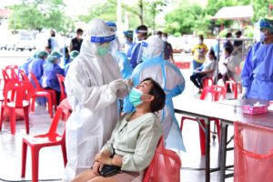 จังหวัดนครปฐม เร่งตรวจคัดกรองเชิงรุก ด้วย Antigen Test Kit ให้กับประชาชนในพื้นที่อำเภอสามพรานและนครชัยศรี เพื่อลดอัตราการแพร่ระบาดของโรค