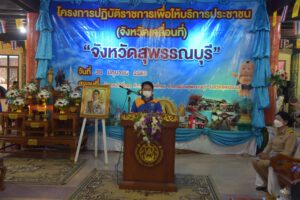 จังหวัดสุพรรณบุรี เปิดเวทีให้ประชาชนแจ้งปัญหาความเดือดร้อน ผ่านโครงการจังหวัดเคลื่อนที่ ที่วัดหัวเขา ต.สระกระโจม อำเภอดอนเจดีย์