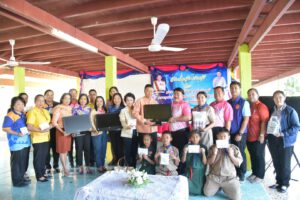 นักเรียนโรงเรียนวัดดอนตาจีนยิ้มแก้มปริ รับมอบอุปกรณ์คอมพิวเตอร์ เพื่อเป็นสื่อการเรียนรู้จากสำนักงานประกันสังคมจังหวัดสุพรรณบุรี