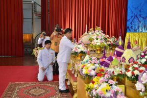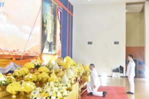 พสกนิกรสุพรรณบุรี ร่วมพิธีถวายน้ำสรงพระบรมศพเบื้องหน้าพระฉายาลักษณ์สมเด็จพระนางเจ้าสิริกิติ์ พระบรมราชินีนาถ พระบรมราชชนนีพันปีหลวง เป็นจำนวนมาก