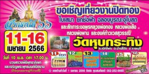 วัดหุบกระทิง ขอเชิญร่วมทำบุญมหากุศลทอดผ้าป่าสามัคคี เนื่องในงานปิดทองใบเสมา ยกช่อฟ้า ฉลองบูรณะอุโบสถ วัดหุบกระทิง ต.เบิกไพร อ.บ้านโป่ง จ.ราชบุรี ในวันที่ 15 เมษายน พ.ศ.2566