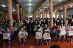 สภากาชาดไทยลงพื้นที่มอบชุดธารน้ำใจสภากาชาดไทยแก่ผู้ประสบความเดือดร้อนจากอุทกภัยในพื้นที่ตำบลวัดโบสถ์ อำเภอบางปลาม้า จ.สุพรรณบุรี