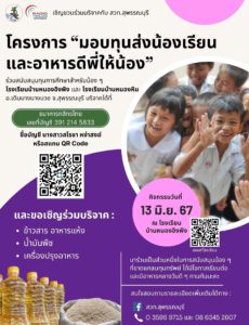 สวท.สุพรรณบุรี เตรียมจัดกิจกรรม“มอบทุนส่งน้องเรียนและอาหารดีพี่ให้น้อง”แก่เด็กและเยาวชนที่เรียนดีแต่ขาดโอกาสทางการศึกษาเนื่องจากขาดแคลนทุนทรัพย์