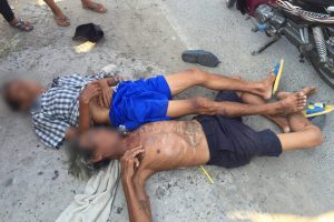 สองผู้สูงวัย ดื่มเหล้าฉลองสงกรานต์ ขี่จักรยานยนต์กลับบ้าน ล้มสลบคาถนน (ฝากเตือนผู้ที่ชอบดื่มเหล้าขณะขับรถ)