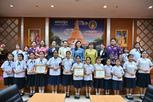 แม่เมืองนครปฐม มอบเกียรติบัตรให้ผู้ที่ได้รับคัดเลือกการประกวดสวดมนต์หมู่สรรเสริญพระรัตนตรัย ฯ การประกวดบรรยายธรรม และการประกวดเยาวชนต้นแบบด้านมารยาทไทยฯ ระดับจังหวัด